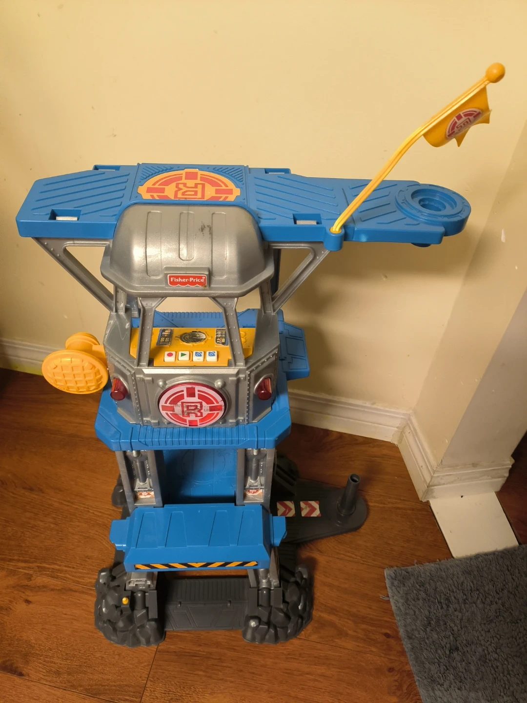 This Fisher-Price Little People Rescue Station is a fun toy for kids. It features multiple levels and interactive elements. It's made of durable plastic and designed for imaginative play.