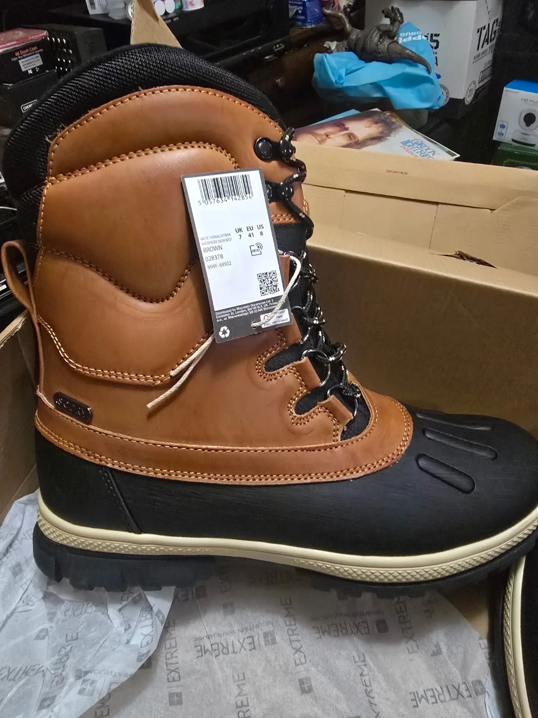 Men's brown waterproof snow boots by Mountain Warehouse. These boots are arctic thermal and have lace-up closures. They are a size 8 US.
