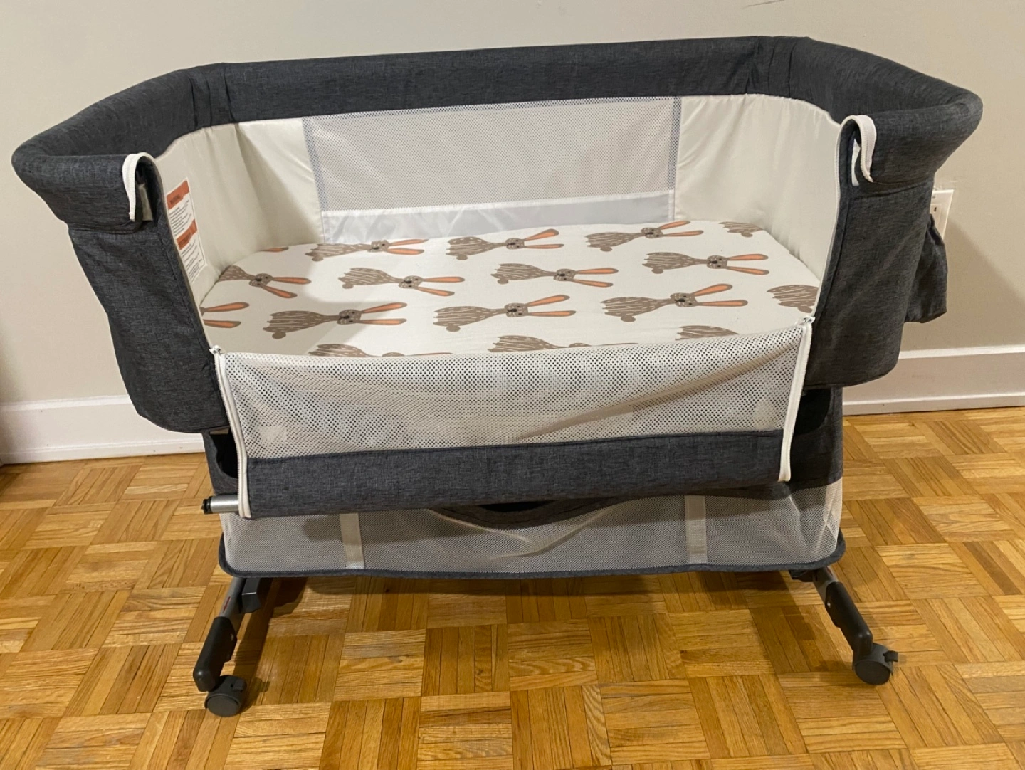Features wheels and storage underneath. Easy to assemble and disassemble.