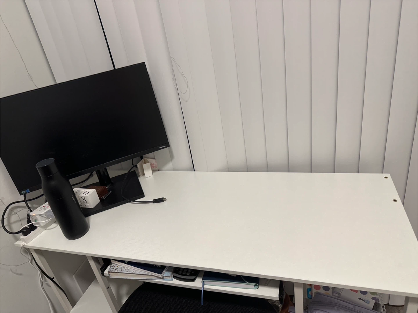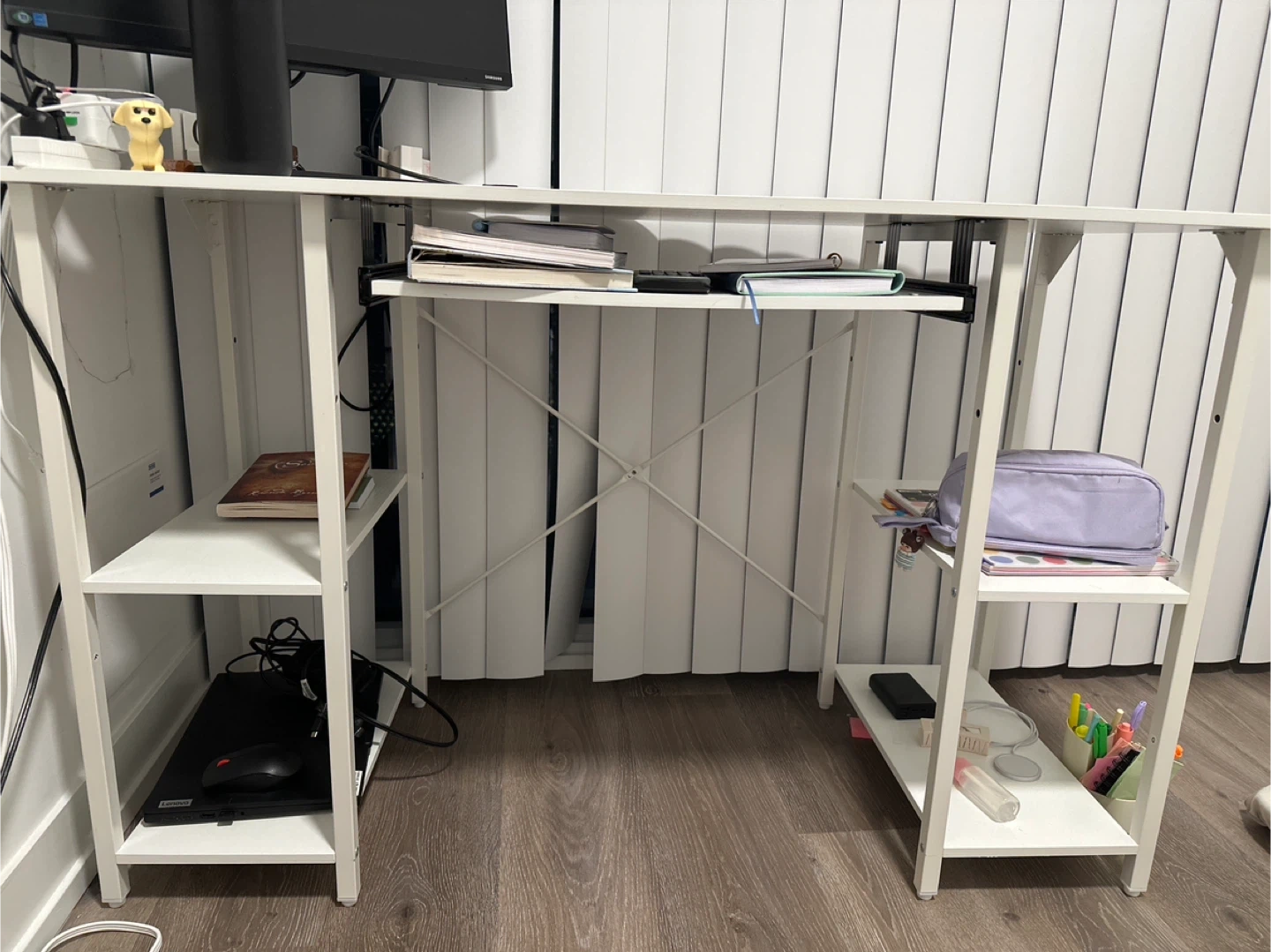 White computer desk with shelves and chair