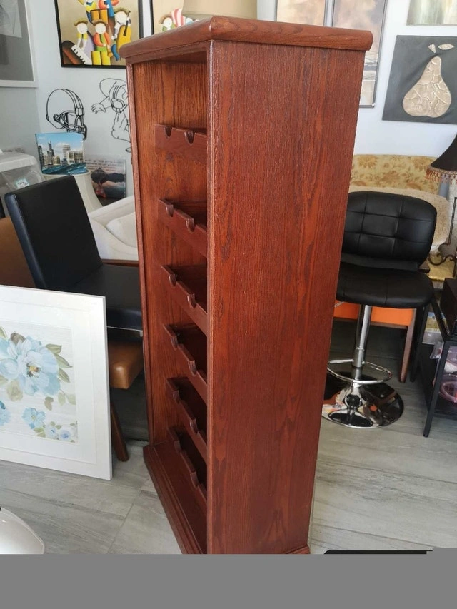 Enhance your home décor with this charming, used wooden wine rack, perfect for storing and displaying your favourite bottles. This sturdy rack holds multiple bottles and adds a touch of rustic elegance to any room. The wood has some minor signs of wear, but overall, it remains in good condition, ready to showcase your wine collection. Key Features: * Material: Solid Wood * Capacity: Holds multiple wine bottles * Style: Rustic, traditional no damages, sturdy If the ad is up, it's still available! PU near chinook mall area