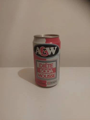 Rare Vintage A&W Diet Cream Soda Can (Made in Canada). This collectible advertising soda merchandise is a must-have for any A&W or soda enthusiast. The pink color of the can is perfect for adding a pop of fun to any collection.