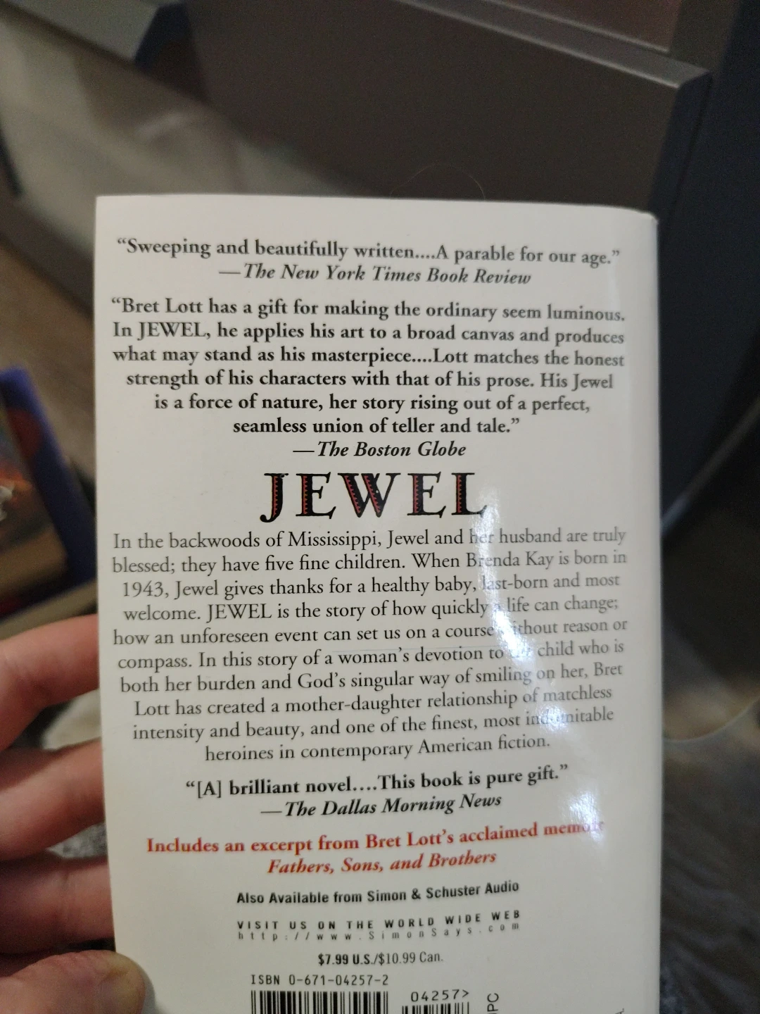 A powerful New York Times bestseller and Oprah's Book Club pick, Jewel is a novel by Bret Lott. It's set in the backwoods of Mississippi and tells the story of Brenda Kay and her family. This book is pure gift!