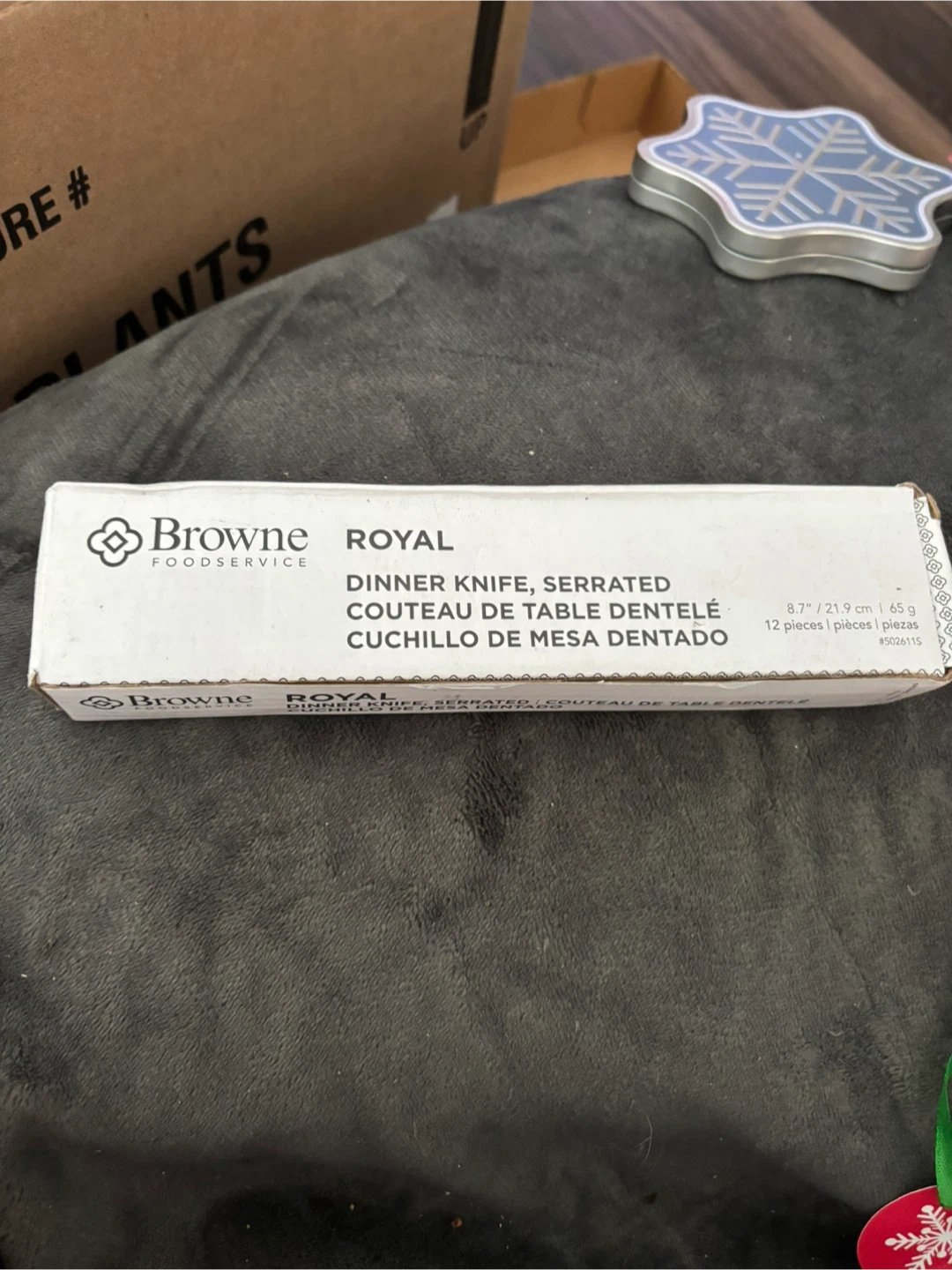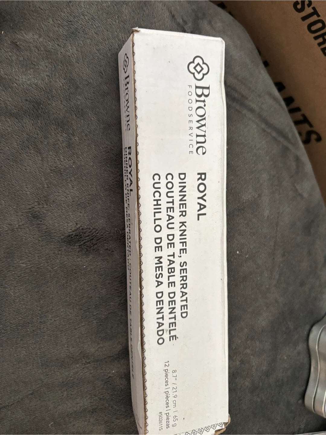 NIB great for holiday gatherings! Selling a Restaurant quality Browne Foodservice Royal dinner knife set! This set includes 12 serrated dinner knives, each 8.7" / 21.9 cm in length. They're made of 13/0 stainless steel with a mirror finish and 2.2 mm thickness. Great for everyday use or special occasions! Restaurant grade last lifetime regular $40 box only $10 3 boxes available 2 sets in plastic not box