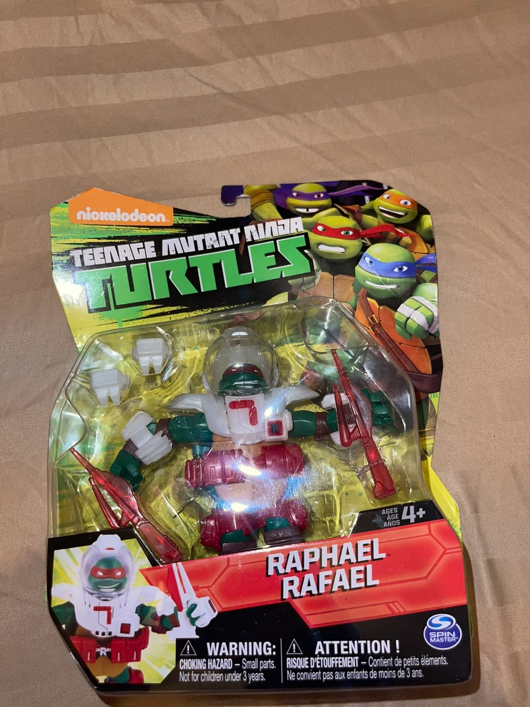 This is a Raphael action figure from Teenage Mutant Ninja Turtles. It's suitable for ages 4 and up. Includes accessories.