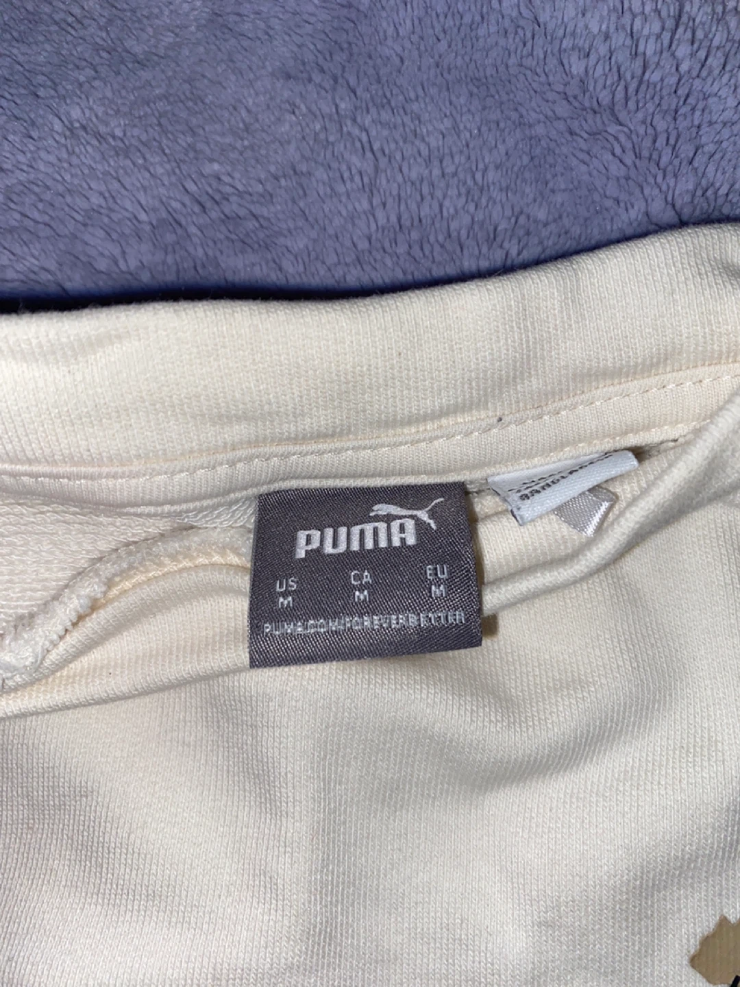 Selling a Puma cream-coloured crewneck sweater in size medium. It's in great condition and ready for a new wardrobe!