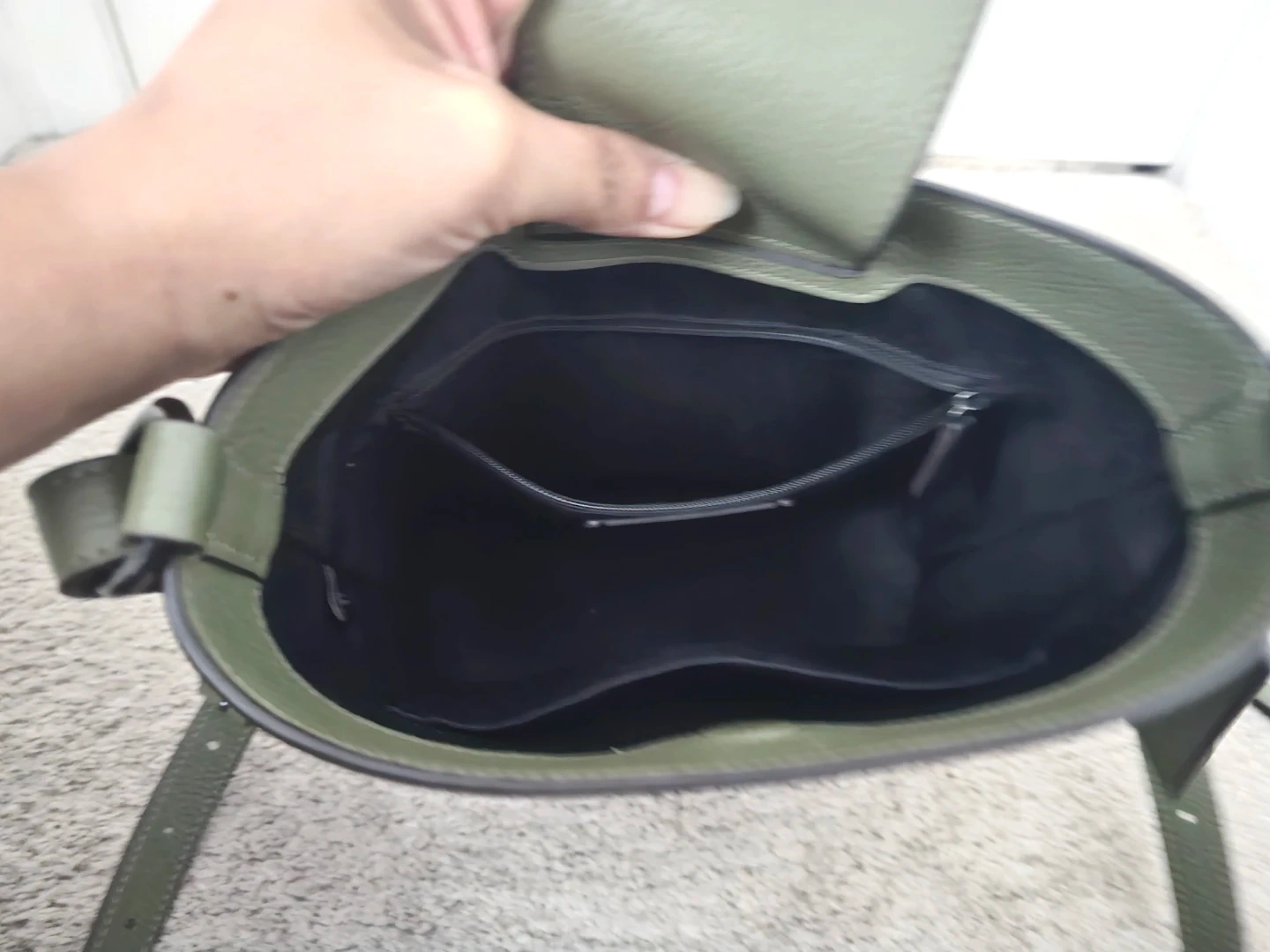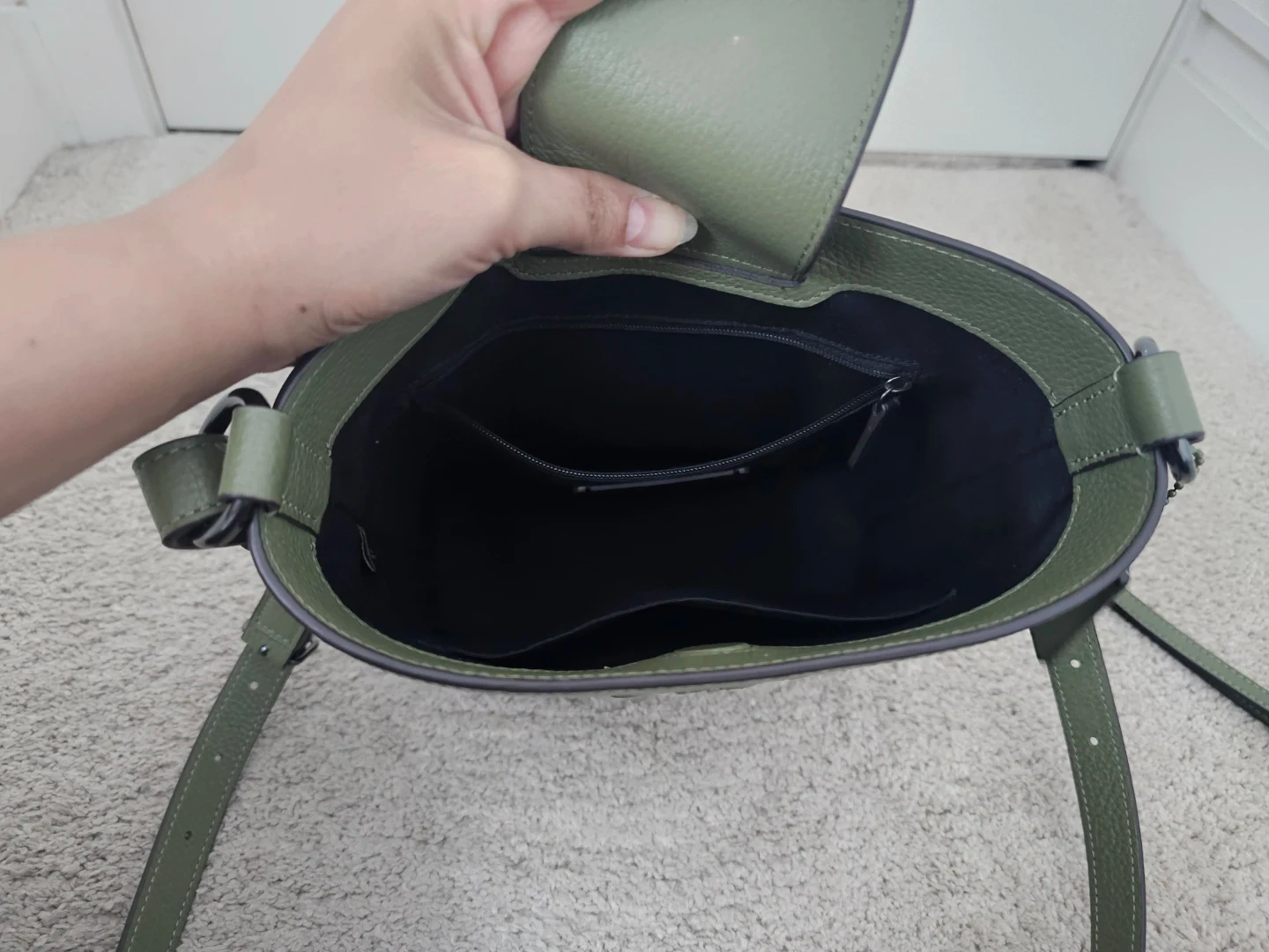Authentic Coach Leather Bucket Bag, Olive Green