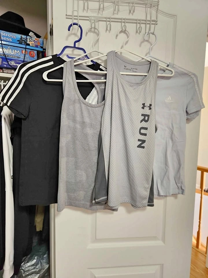4-piece women’s athletic top bundle in excellent used condition. Includes: 2 Adidas short-sleeve athletic tees (Size Small), 1 Under Armour RUN performance tank (Size XS), 1 New Balance athletic tank (Size XS). All items are clean, no stains or rips, and perfect for gym, running, or casual activewear. Neutral colors that are easy to match. Selling as a bundle. Smoke-free home.