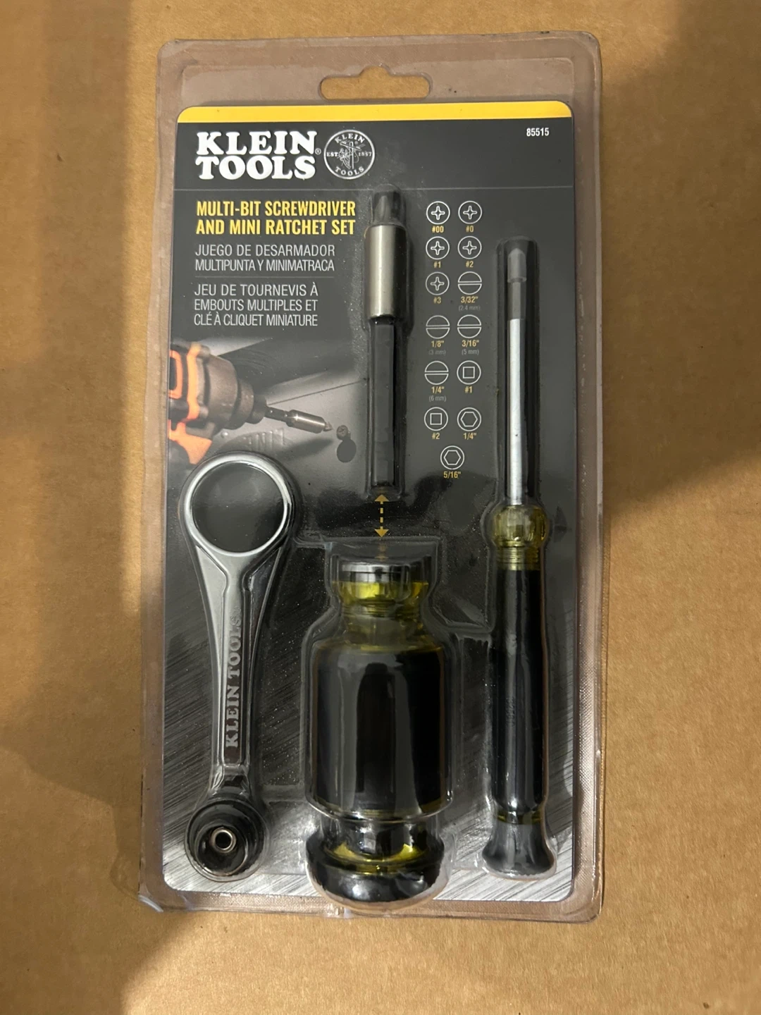 75Looking to sell a Klein Tools multi-bit screwdriver and mini ratchet set. It's brand new in the packaging.
