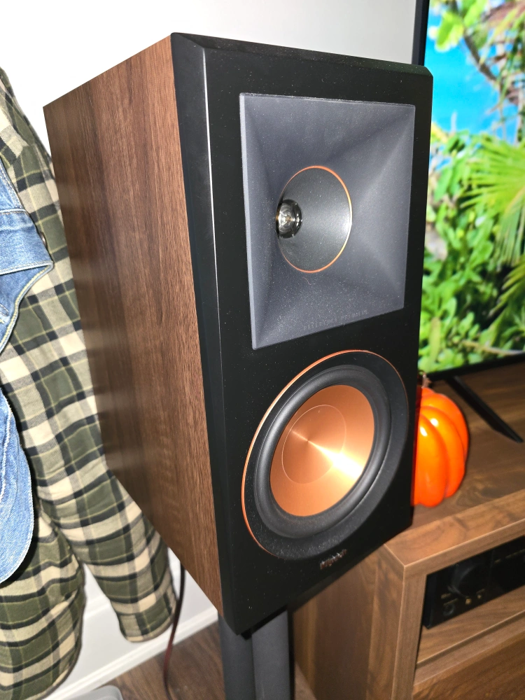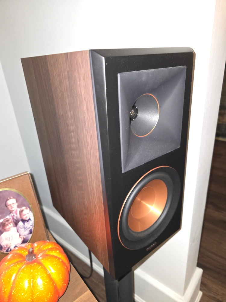 If they're posted they're available for purchase and will be removed when sold. Klipsch RP-600-M Walnut Bookshelf Speakers In mint condition with not a mark on them. Highly regarded and reviewed. Lots of info online. All specs can be found on picture #8. These are $735.00 tax in plus $110.00 shipping on Amazon currently for this walnut version. That's the lowest price out there. My price is firm at $650.00 They can be heard before purchase and I have all the original packaging and manuals so they can be shipped at buyers expense. Thanks for looking. Please see my other ads.