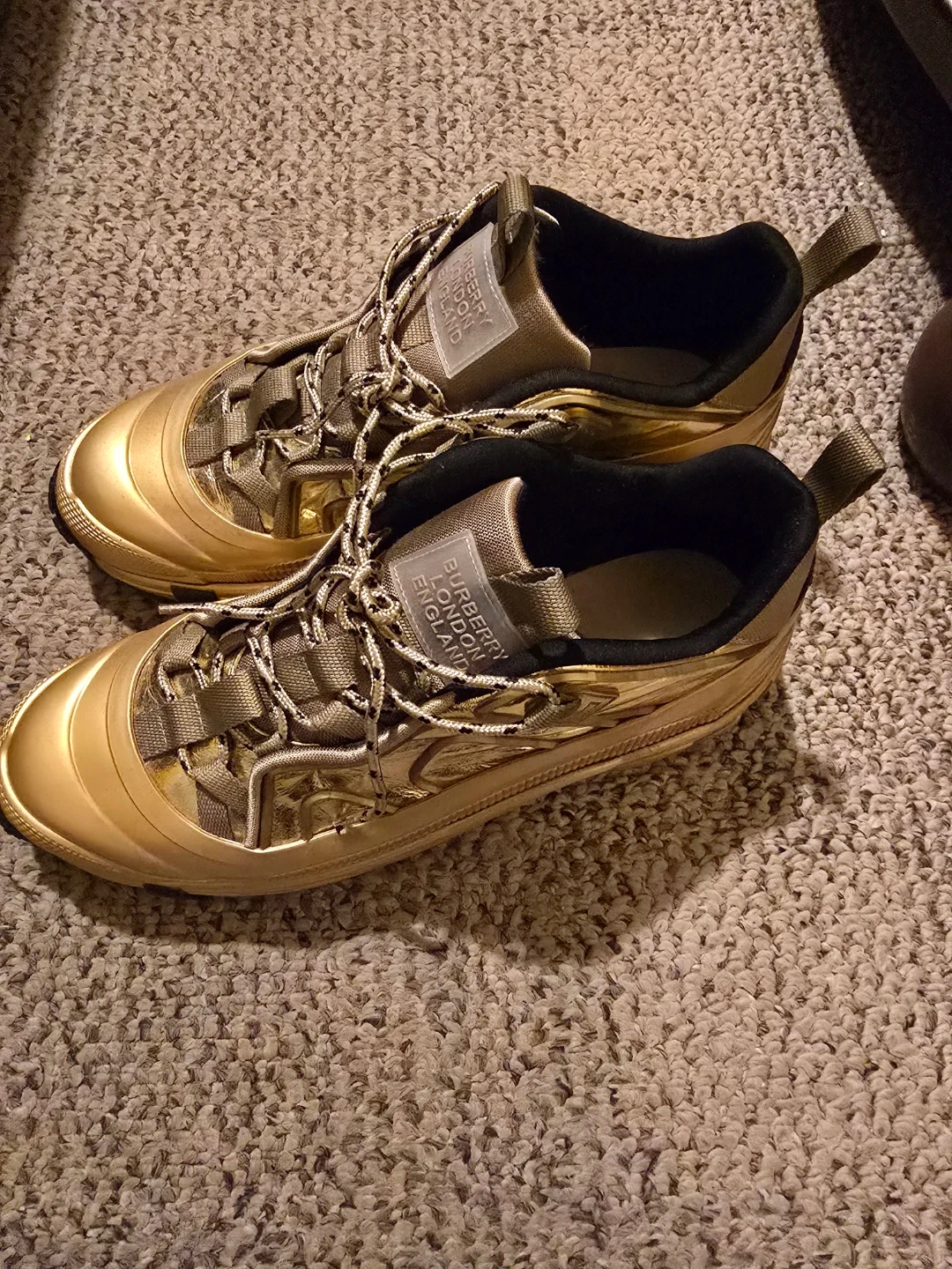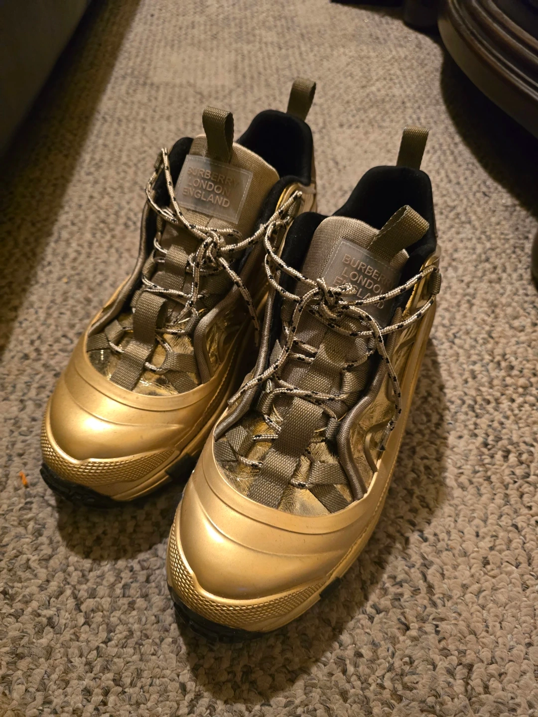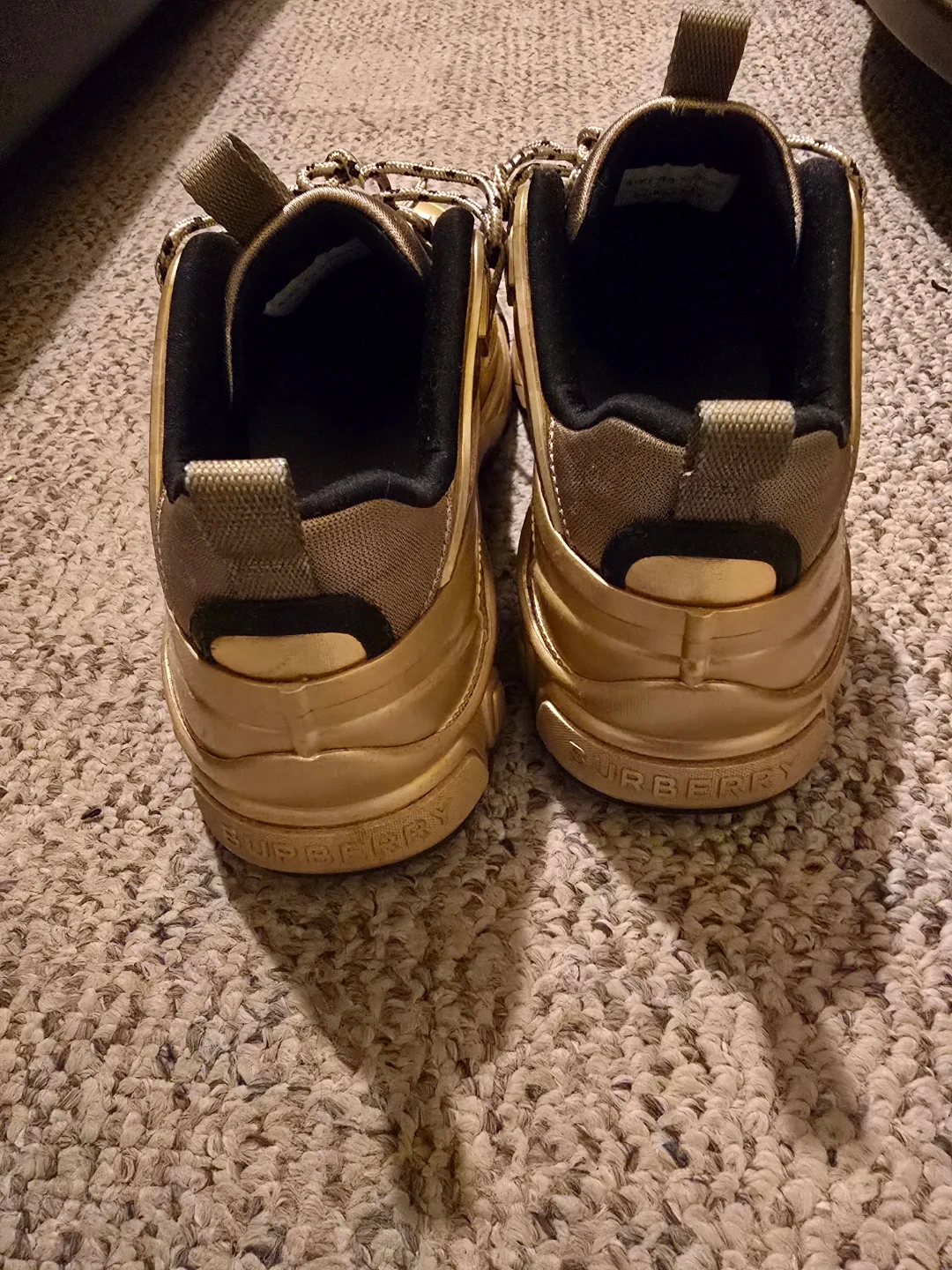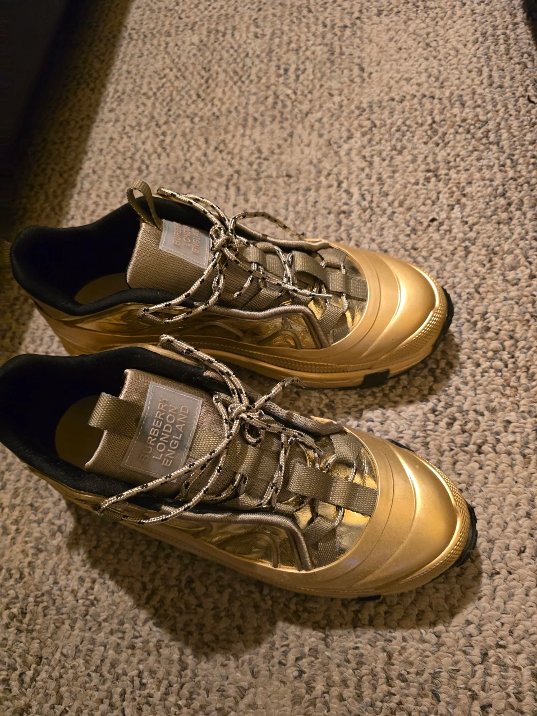 Buy & SellMen Gold Burberry Arthur SneakerMen Gold Burberry Arthur Sneaker$567Burberry London England sneakers. Gold color. Lace-up closure. Durable construction.WHERE TO MEETCheck LocationView MapSELLER555703Mount Vernon East100 reviews0 chats·0 favorites·5 viewsSEND CHAT TO SELLERHi 555703! I’m interested in your listing.Hi 555703! I’m interested in your listing.Get the Karrot app to chatSign In to chat