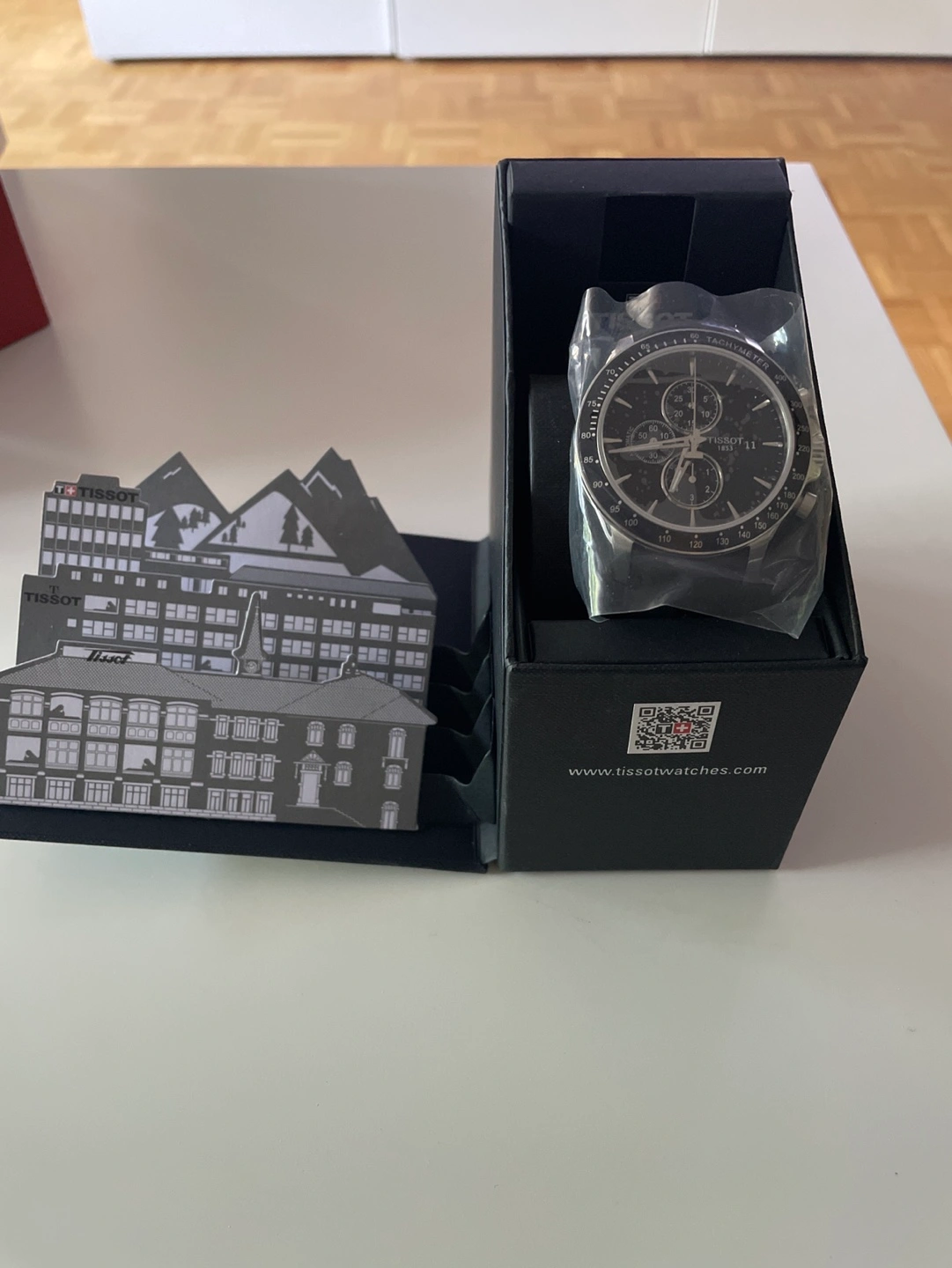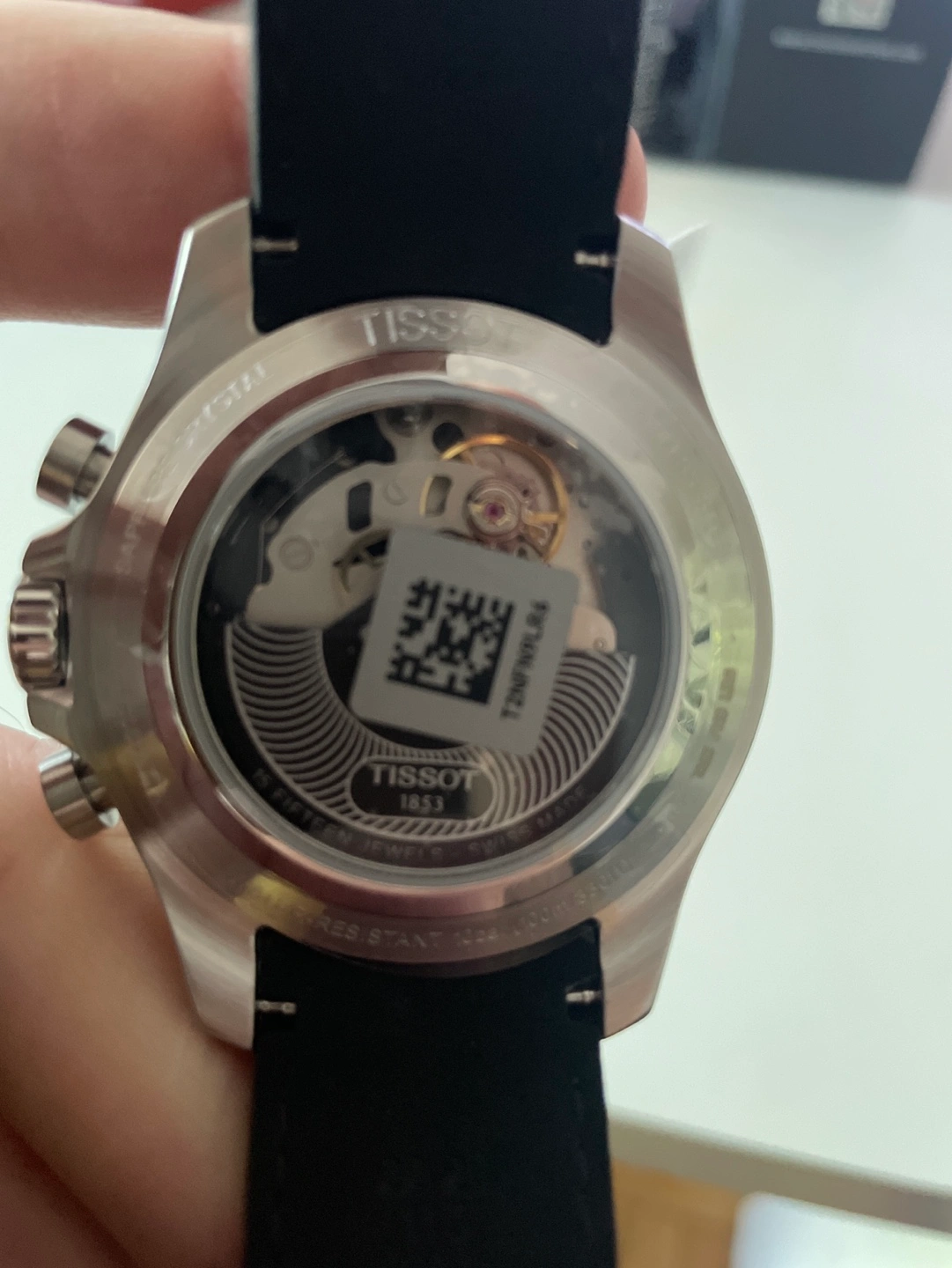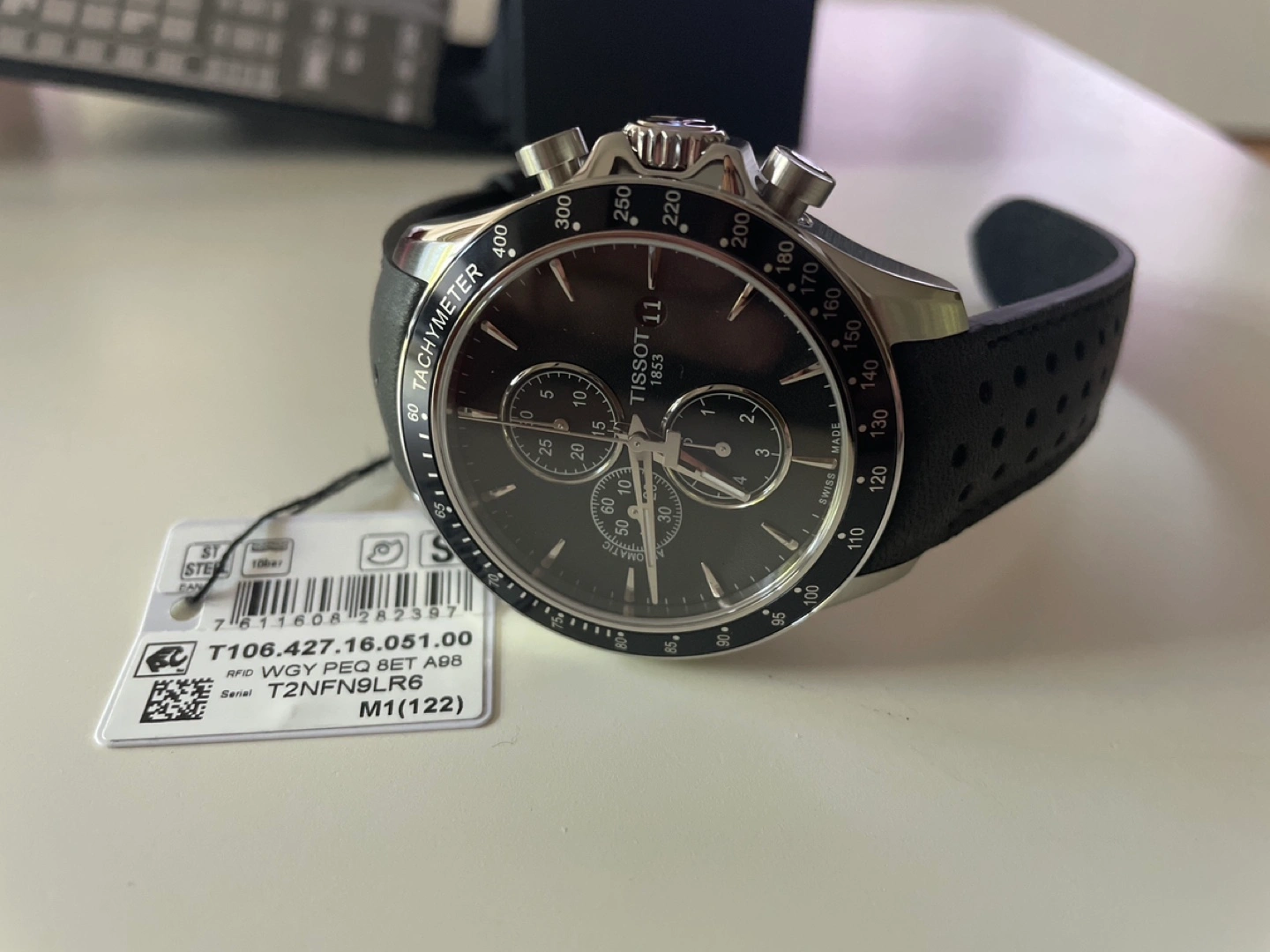 Ref# T106.427.16.051.00 Black dial, automatic, silver bezel, black leather strap. Comes with box and papers. 45mm case size.