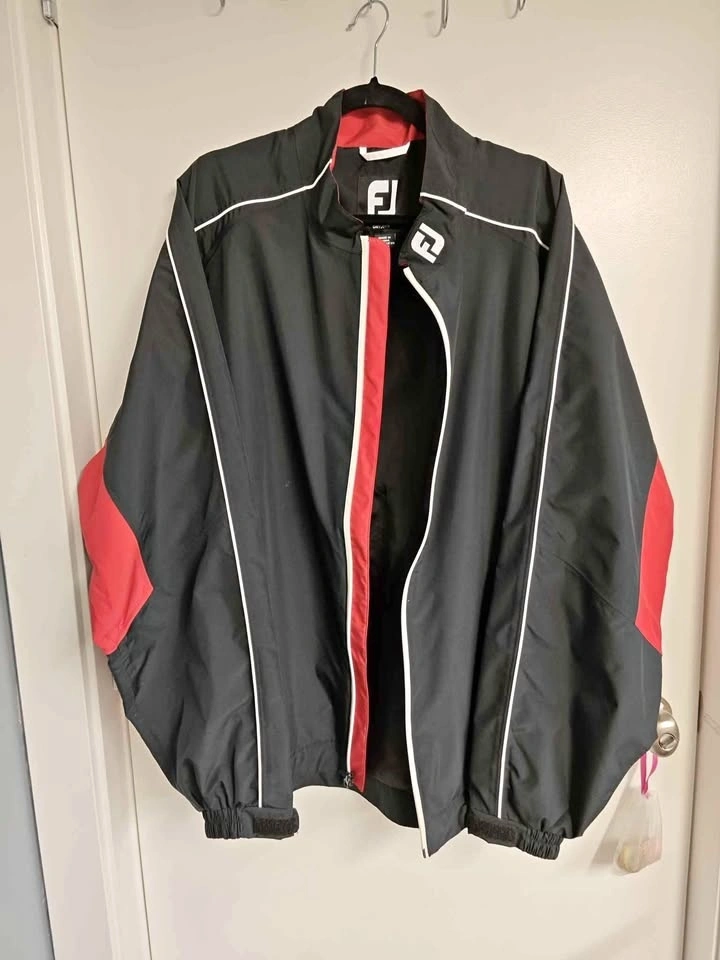 FJ dryjoy rain jacket, red/black, size 2XL. Only worn once. Pickup can be arranged in North Delta, Burnaby, or Richmond on certain days/times.