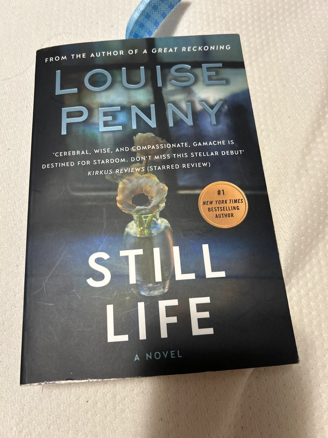 This is Still Life, a novel by Louise Penny. It's the first in the Chief Inspector Gamache series. This book is a #1 New York Times Bestselling Author selection.