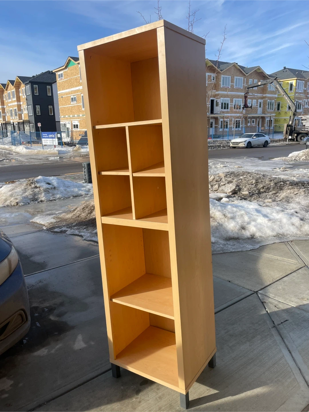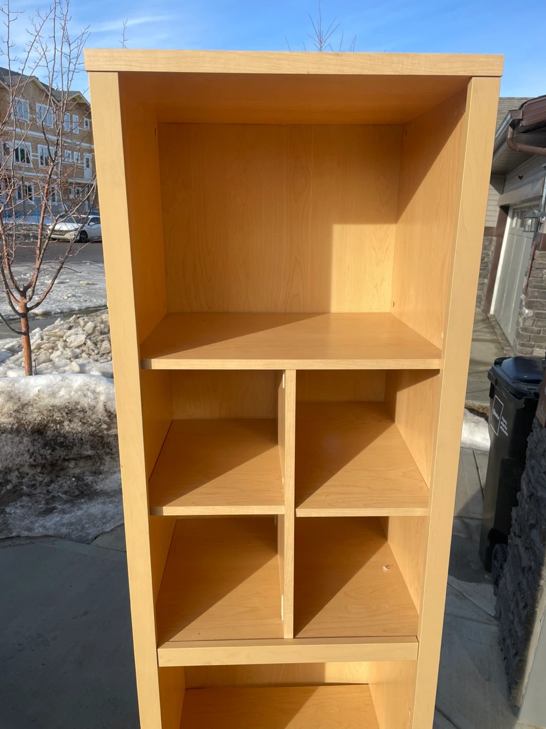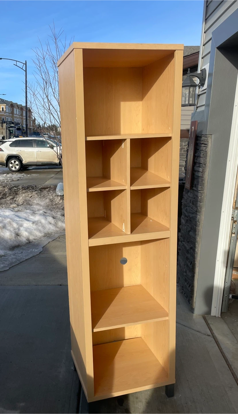 Tall Light Maple Veneer Finish Bookshelf.