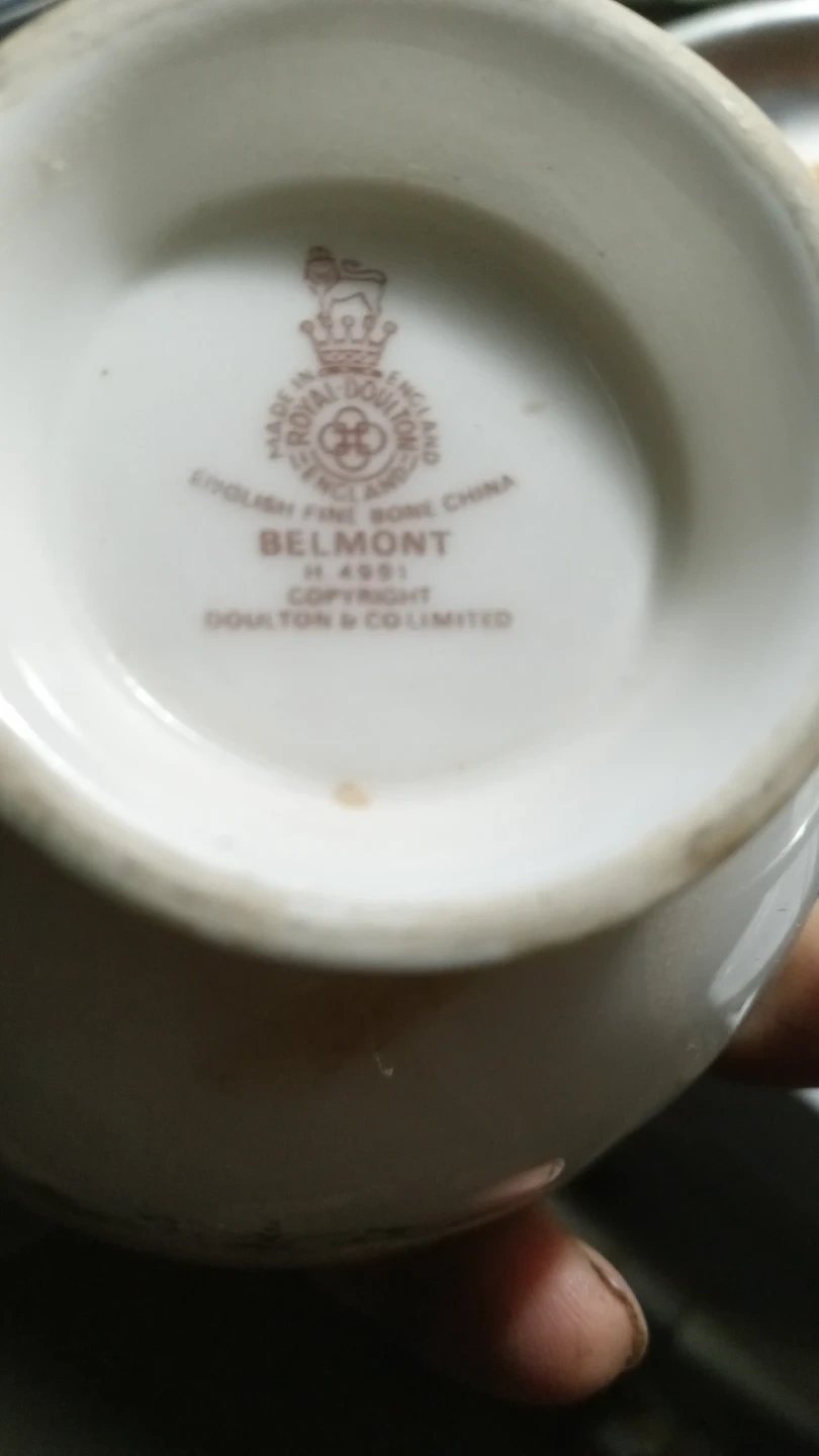 Beautiful white bone china teacup and saucer set with gold trim and floral designs. Made in England by Royal Vale. It's perfect for enjoying a nice cup of tea! Have an extensive collection rare king, Albert sets some China as old as 1700s. Grandparents passed away and just wanna Get it out there to someone who loves this stuff like they did.\nMake a reasonable offer.You're welcome to come see