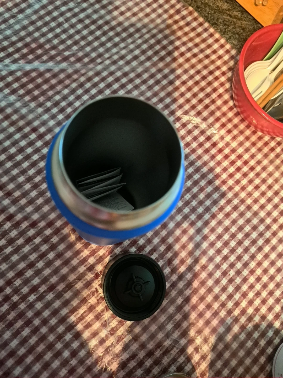 Brand new blue 20 oz (592 ml) vacuum insulated water bottle. Made from 18/8 food-grade stainless steel. Hand wash recommended. BPA-free and responsibly made in China. Keeps drinks cold or hot!