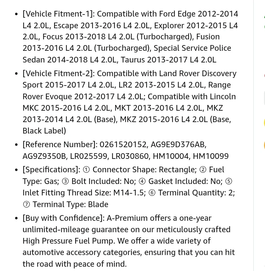 This is an A-Premium high-pressure fuel pump. It features a connector shape for a blade terminal type. Inlet fitting thread size is M14-1.5.