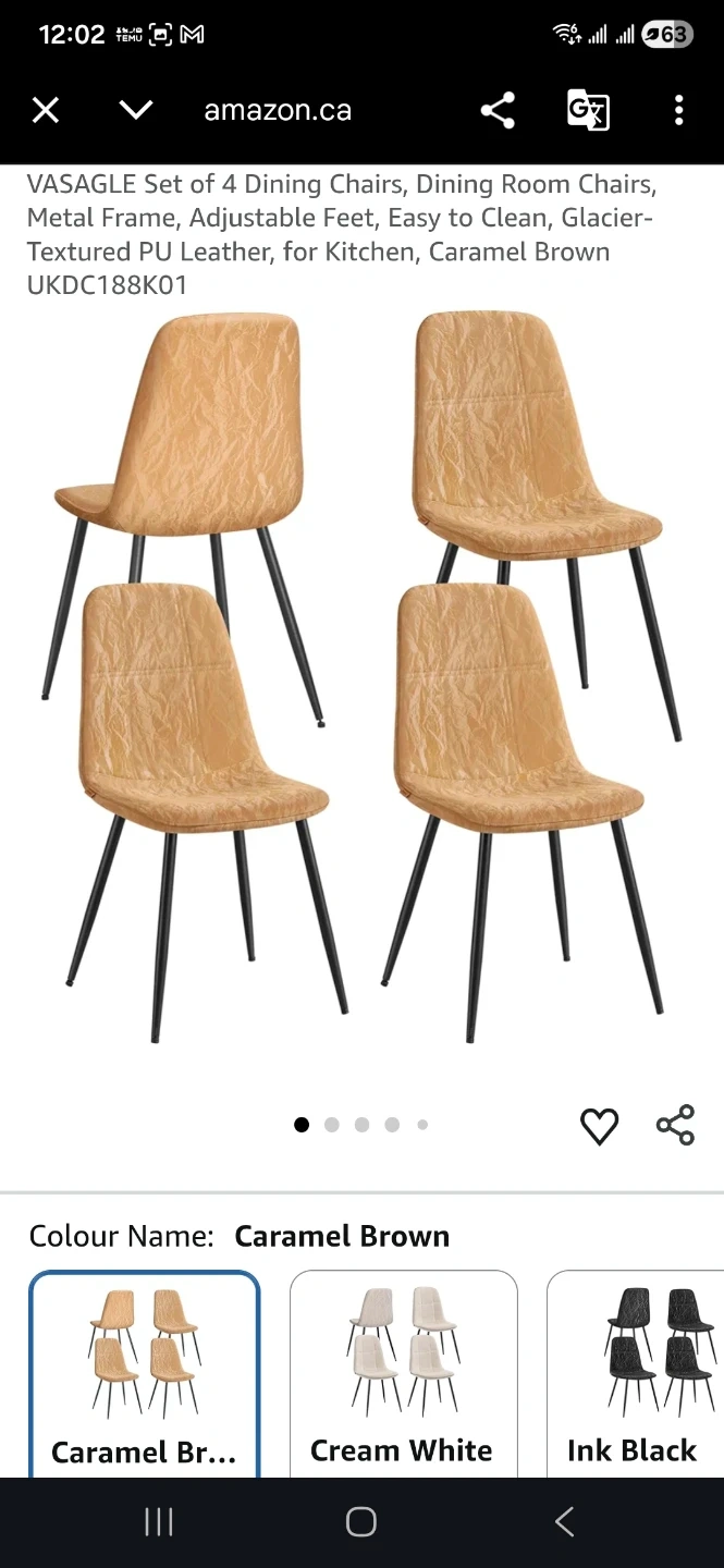 BRAND NEWWW VASAGLE Set of 4 Dining Chairs π