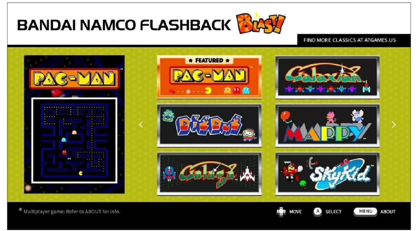 Included Games: Comes with 8 pre-installed classic Bandai Namco games, including Pac-Man, Galaga, Dig Dug and Mappy.