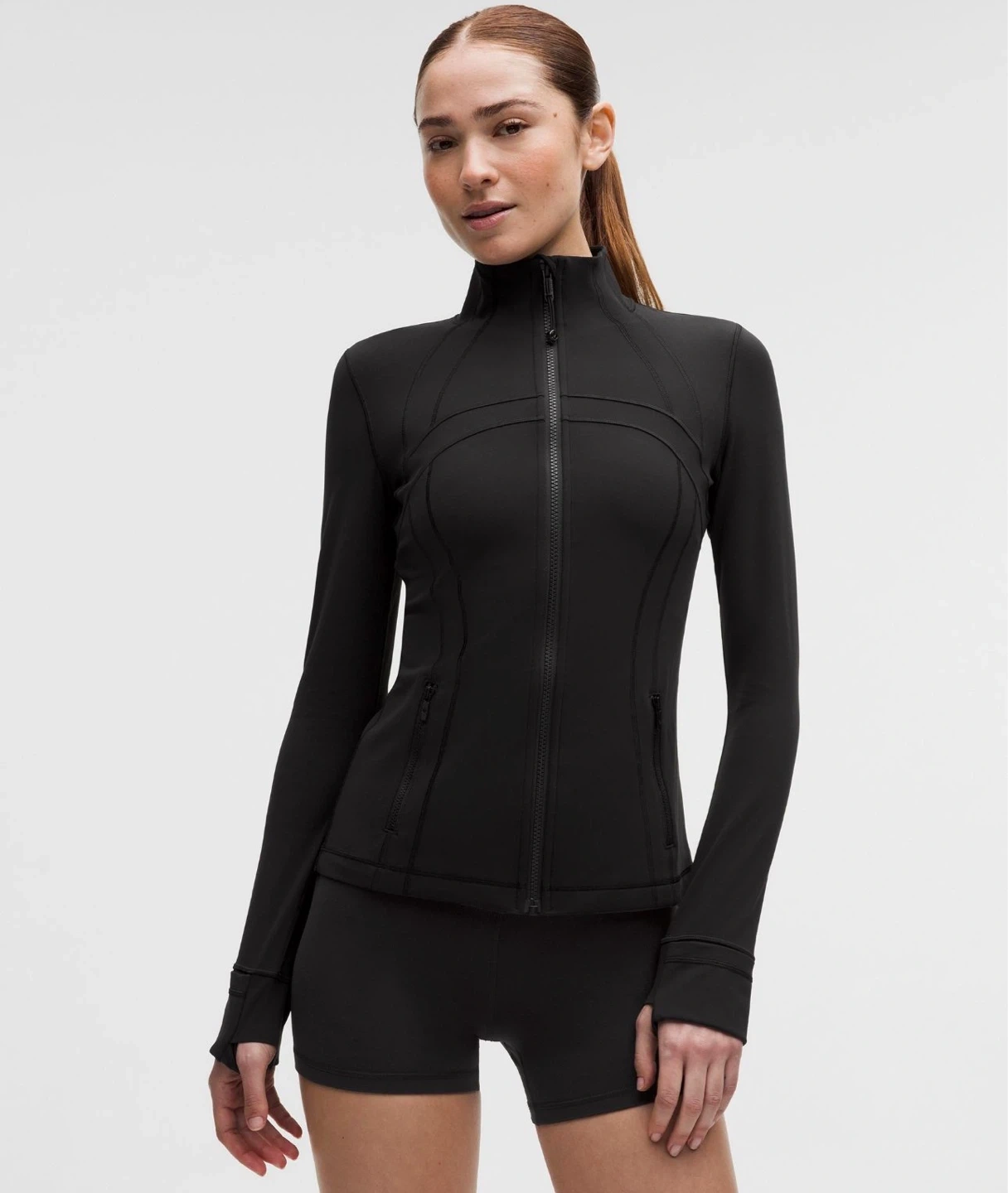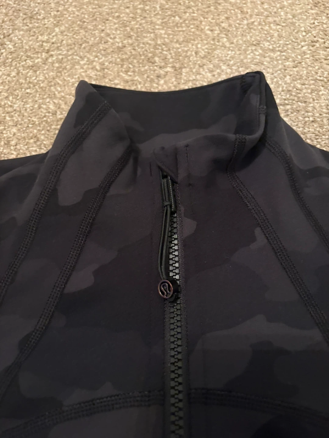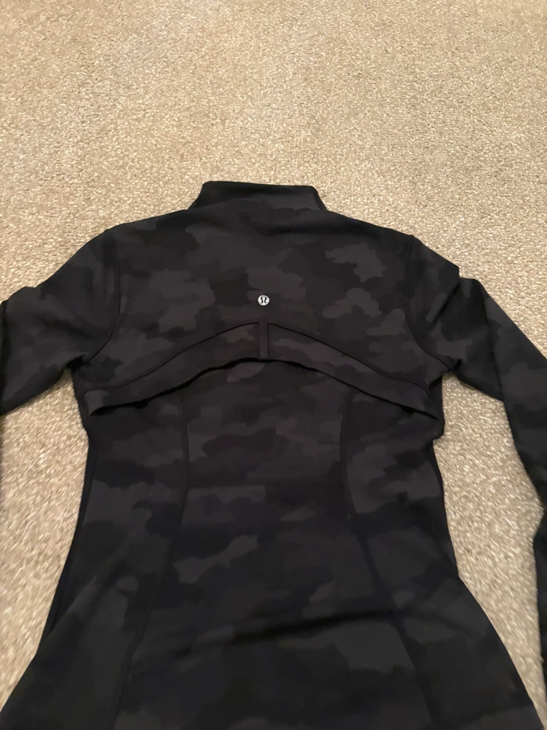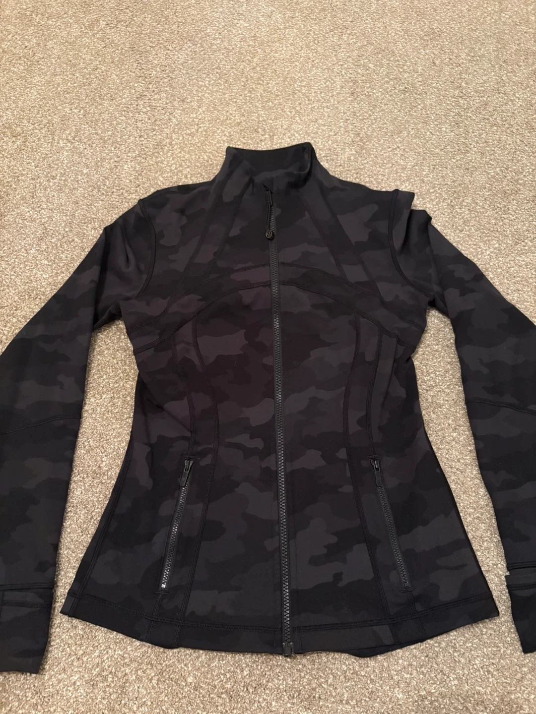 Lululemon Align full zip jacket in a dark camouflage print. Features zippered pockets and thumbholes.