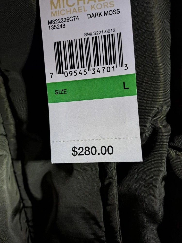 New Michael Kors hooded down coat with faux-fur trimmed hood. Features 6 POCKETS: 2 upper and 4 lower. NOT online mornings. A bit of flex in price, although NO half or low-ballers, since retail price was $305 with the 8.875% taxes (See photos). Was $154.99 and marked down this weekend.