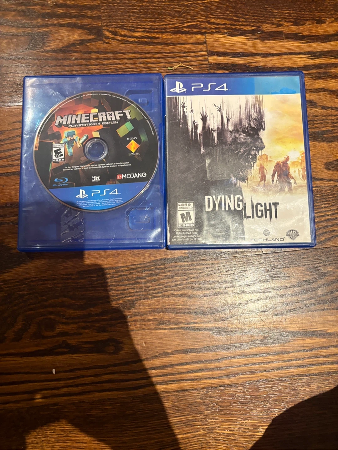 Selling two PlayStation 4 games: Minecraft and Dying Light. Both games are in their original cases. However Minecraft doesn’t have box art. Can be purchased individually or as a lot.