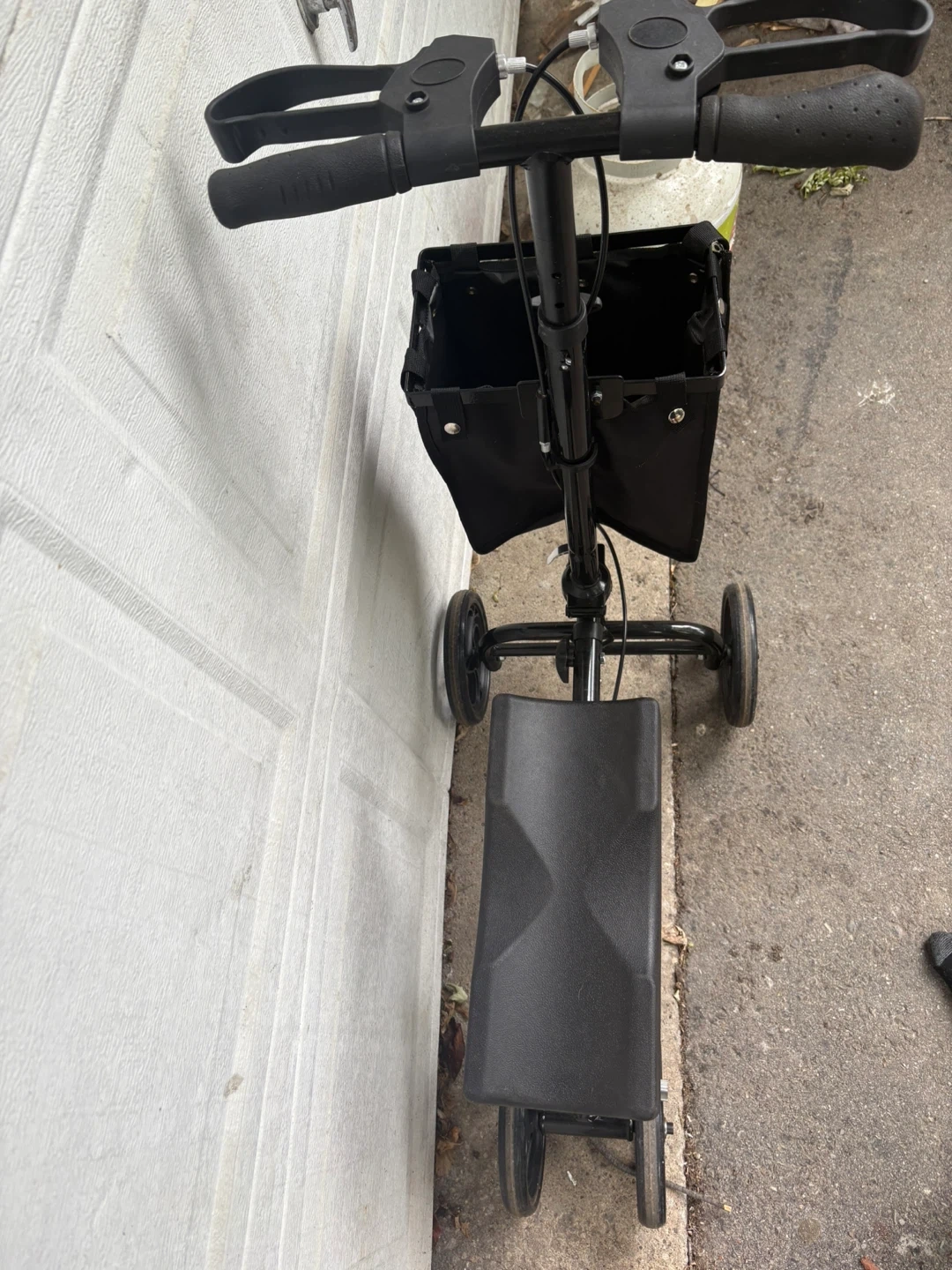 60Selling a knee walker in good condition. It's black, has a comfortable seat, and a convenient basket for carrying items. Great for getting around while recovering from a foot or ankle injury