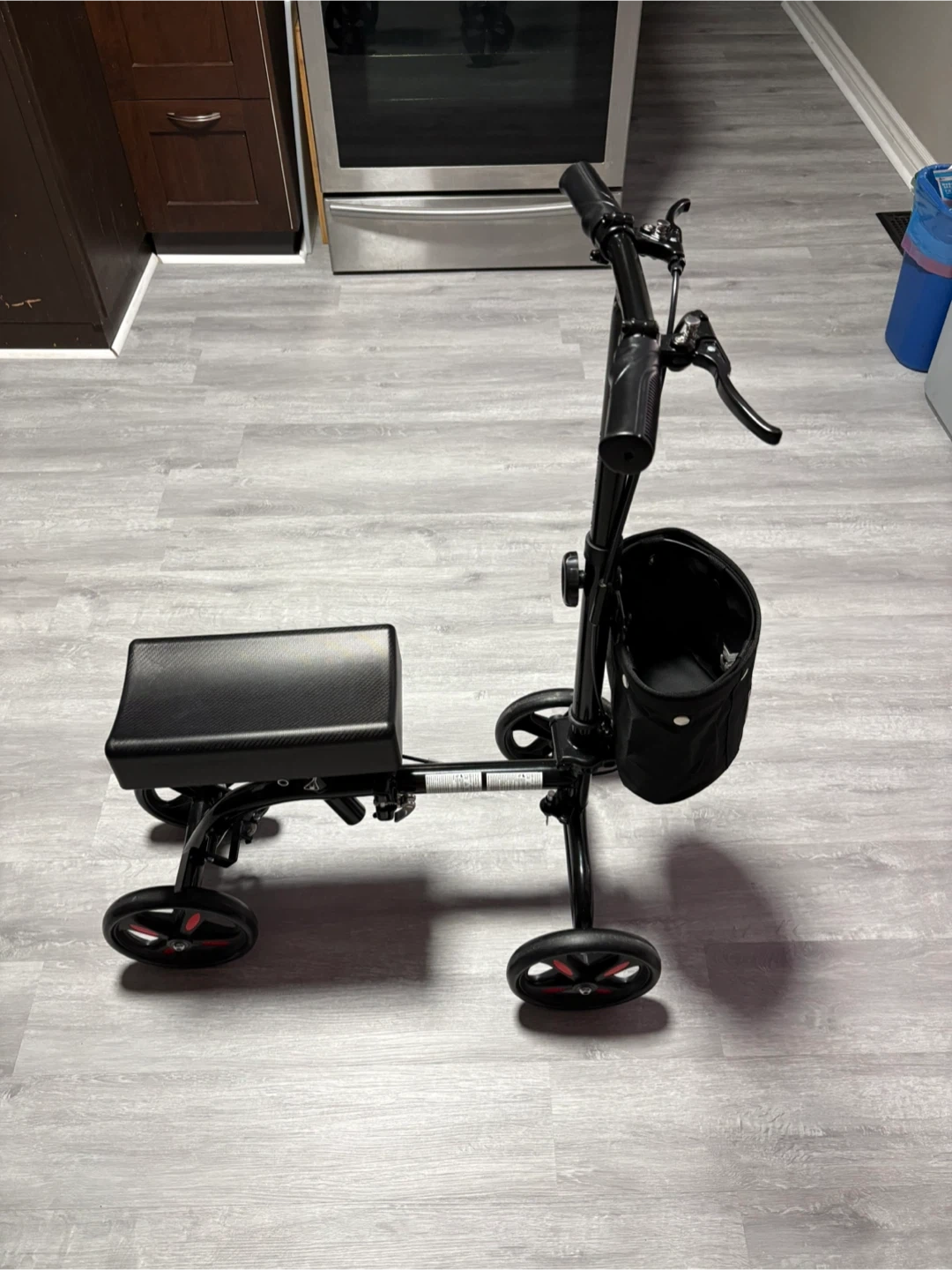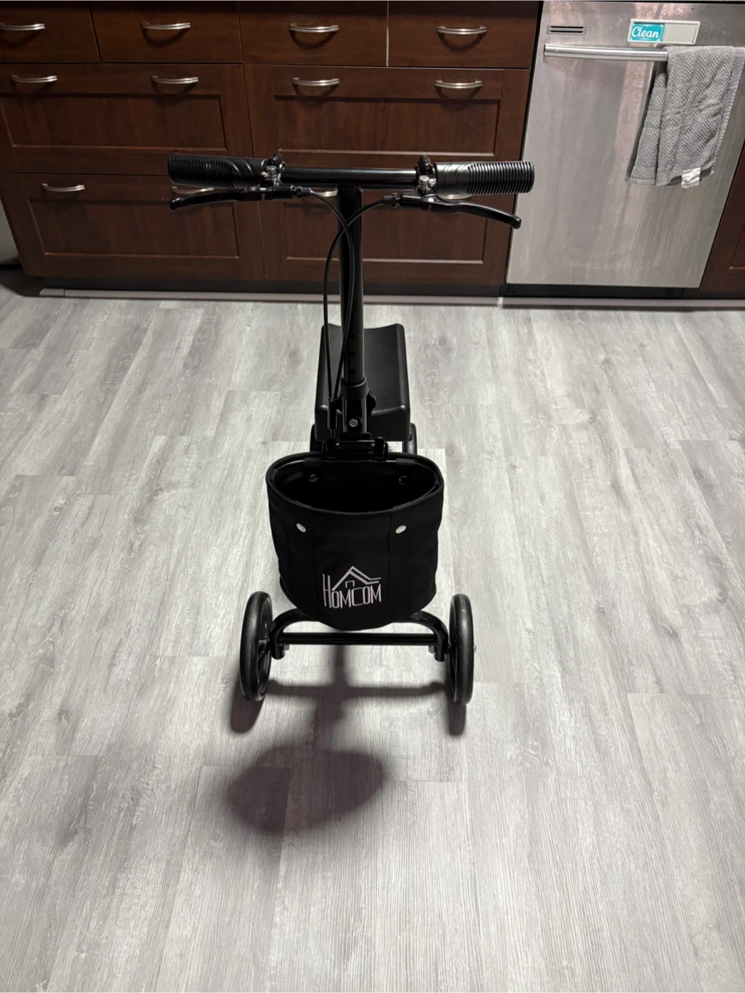5Selling a HOMCOM knee walker scooter! It's black and has a convenient basket in the front. Great for getting around while recovering from a foot or ankle injury