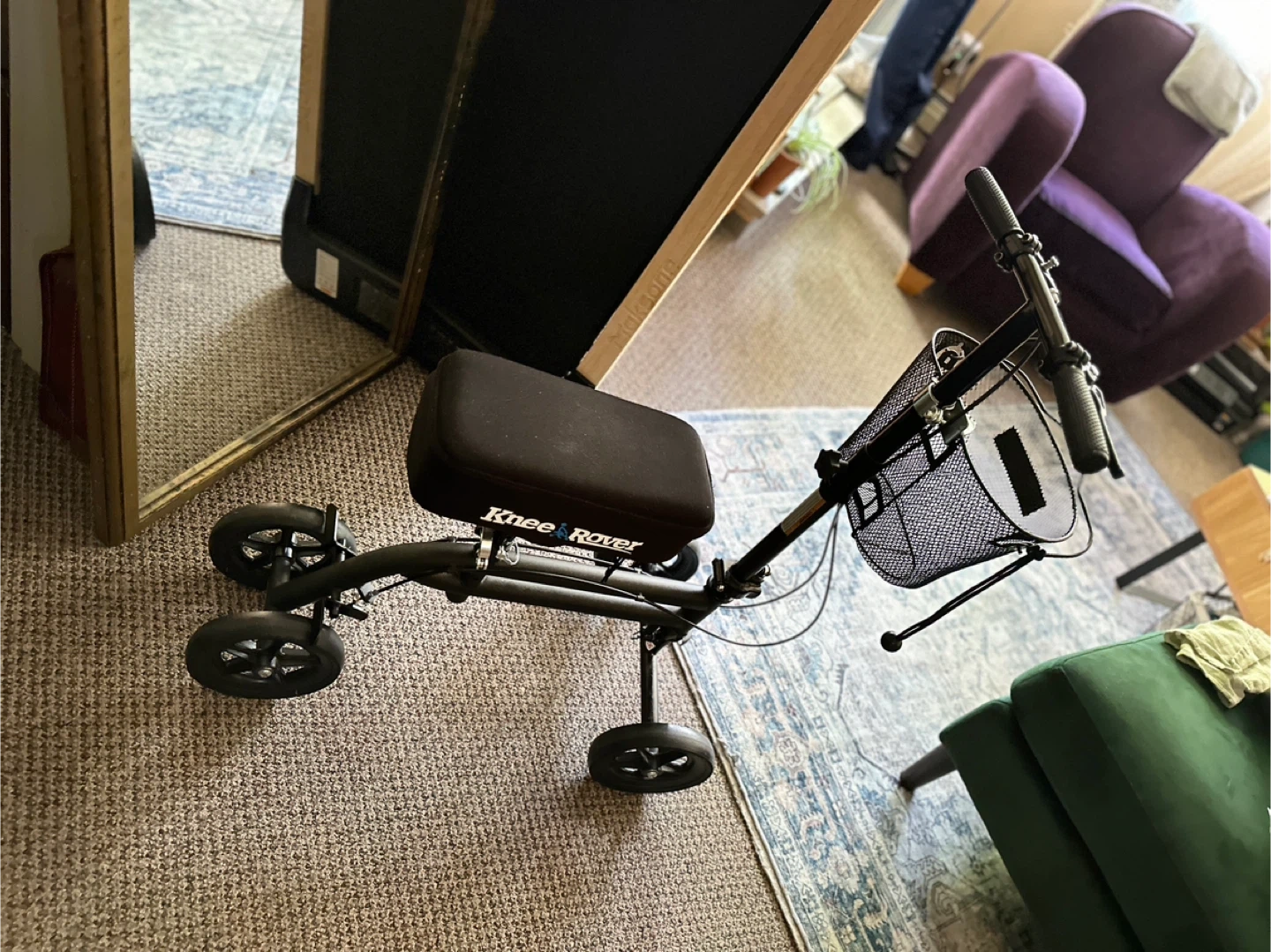 60Selling a KneeRover knee walker in black. It's in great condition and ready to help you get around comfortably while recovering! Perfect for anyone needing to keep weight off their foot or ankle after surgery or injury. Comes with added seat cushion and removable shopping basket. Cost $235. Minimum accepted $125.