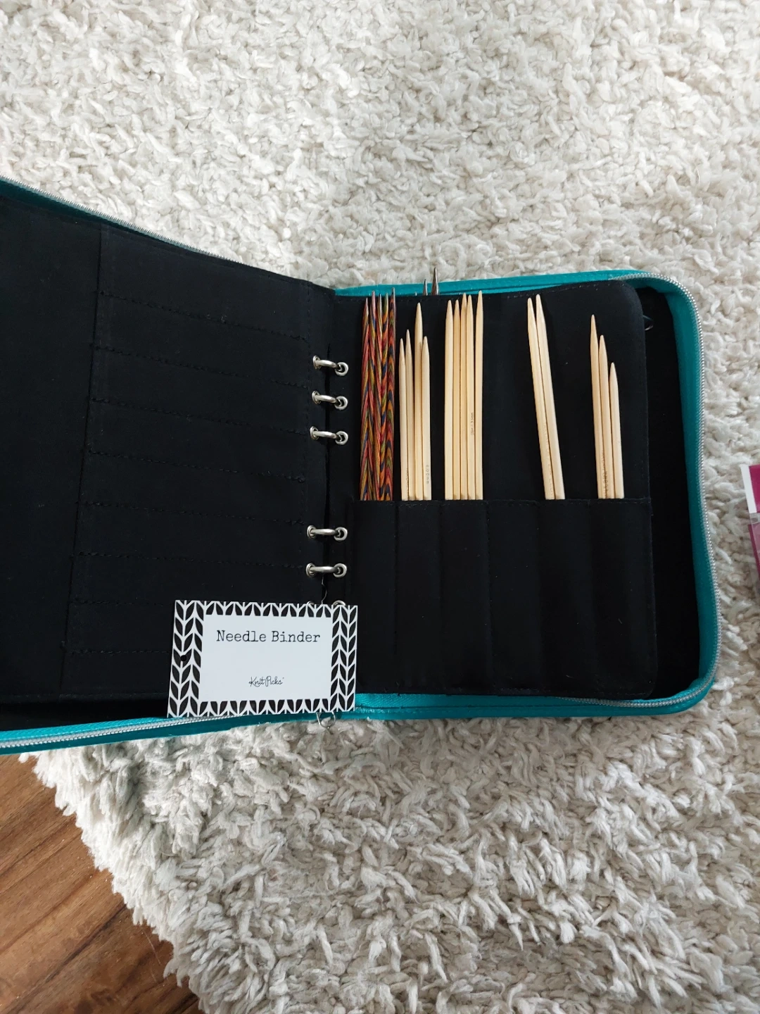 12Keep your knitting needles organized with this Knit Picks Needle Binder! It's in great condition and ready for a new home. Assortment or circular needles, and other needles as shown.