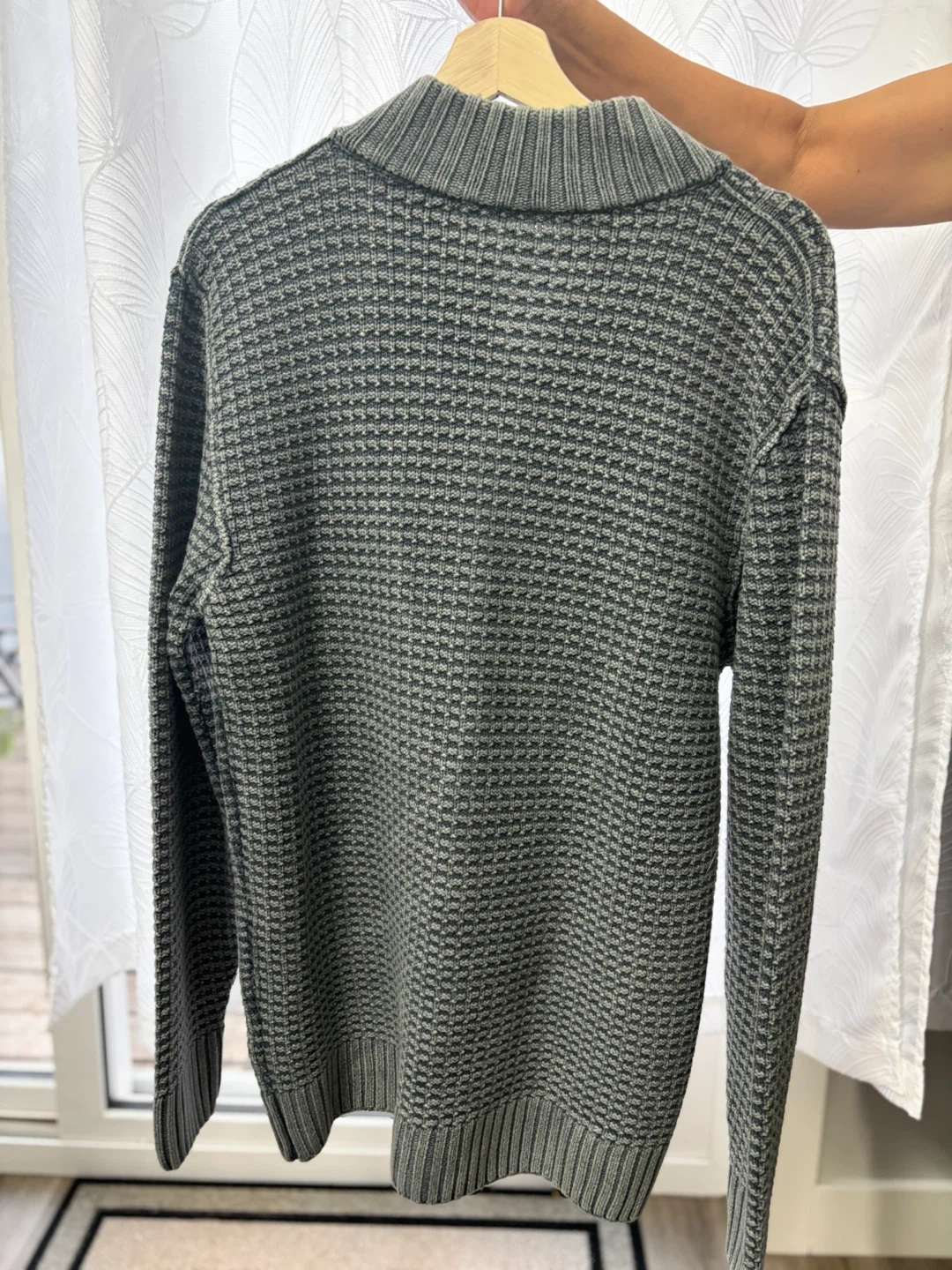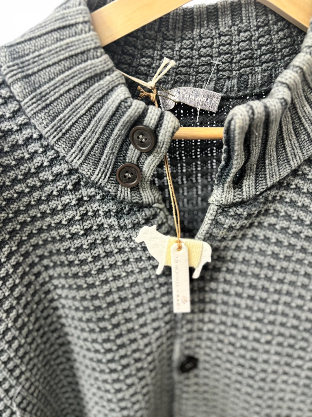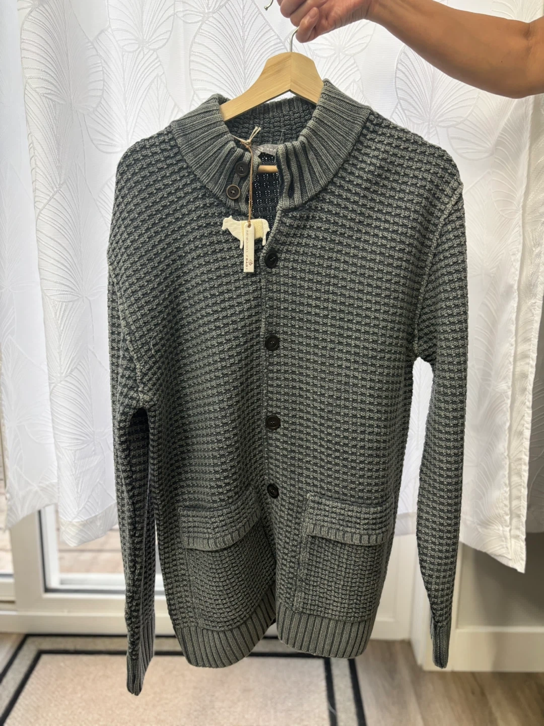 Cozy Inis Meain knitted cardigan in a lovely grey colour. It's made of soft wool and features a button-up front and front pockets. Perfect for layering on chilly days!