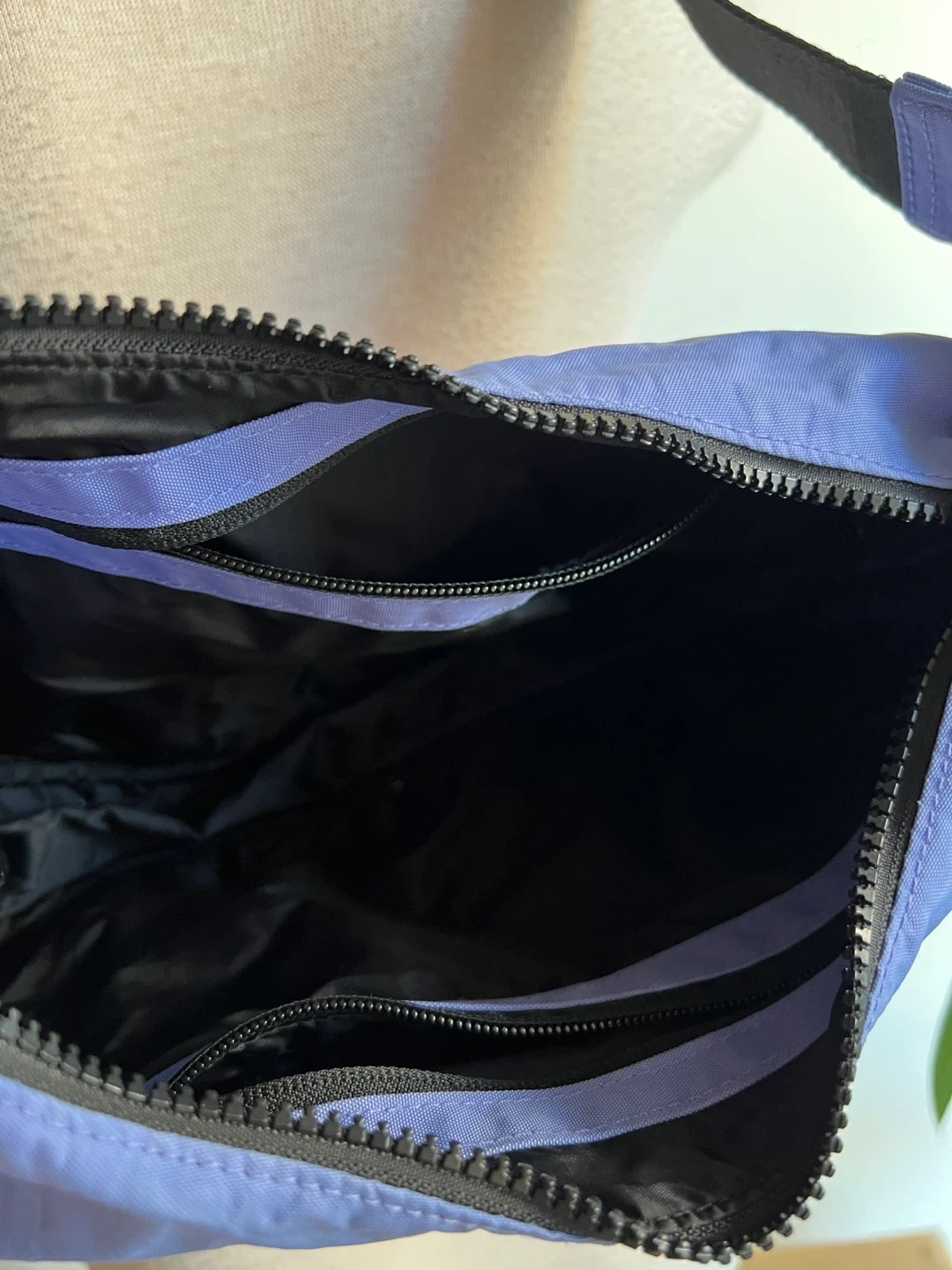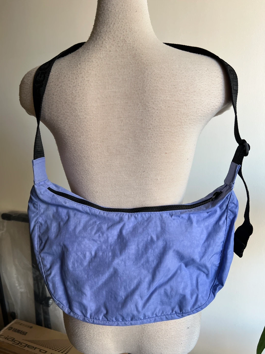 This is the medium crescent crossbody bag. It’s been washed in the washing machine. Excellent condition with just a few small marks which are not noticeable. It has 2 interior pockets and the strap is adjustable. It’s a great size for everyday use or travel.