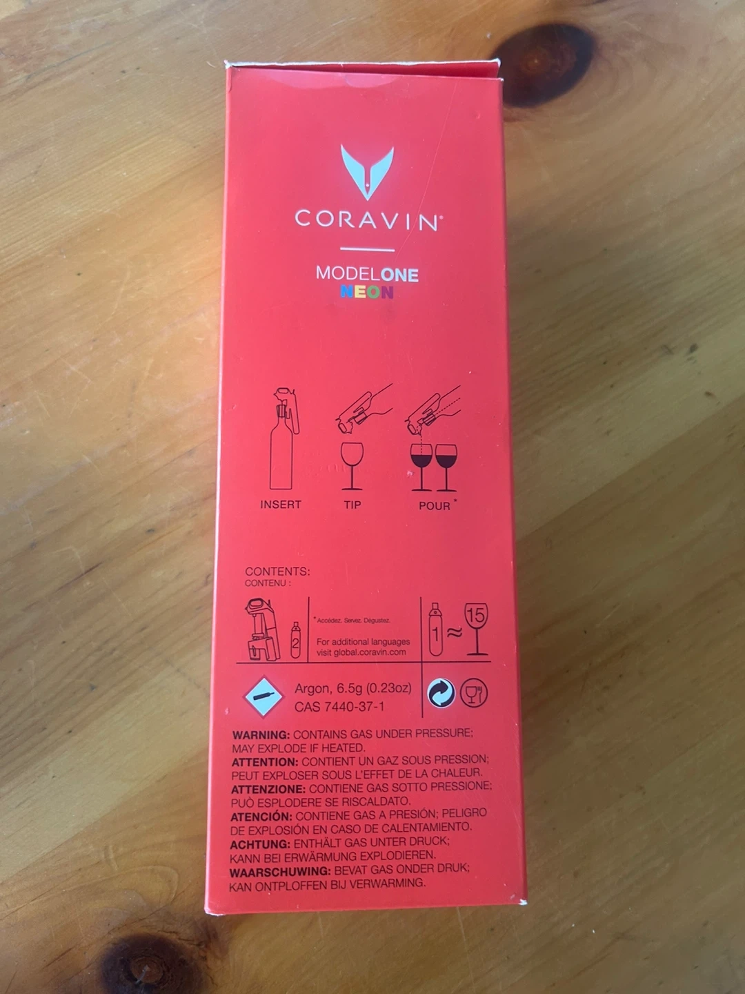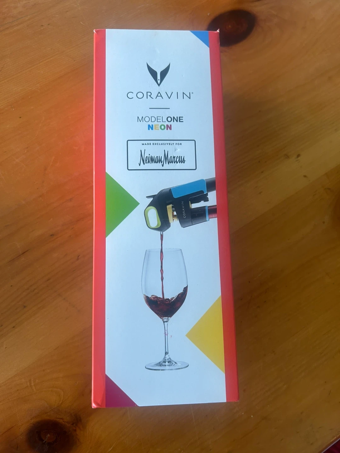 This Coravin Model One Neon is made exclusively for Neiman Marcus. It's designed to pour wine without pulling the cork. Includes a 6.5oz (0.23oz) argon gas capsule.