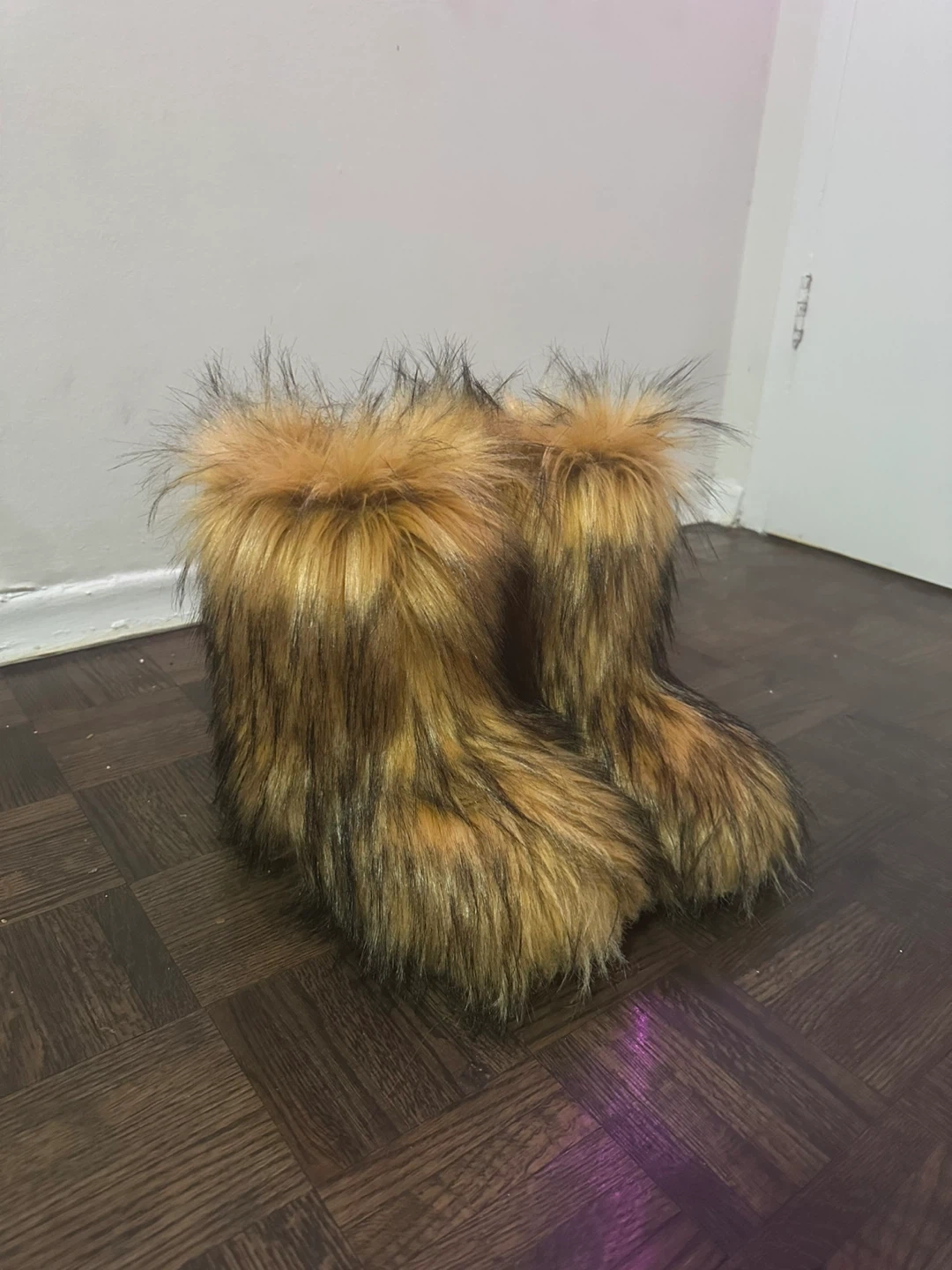 Fuzzy Faux Fur Boots - Brown