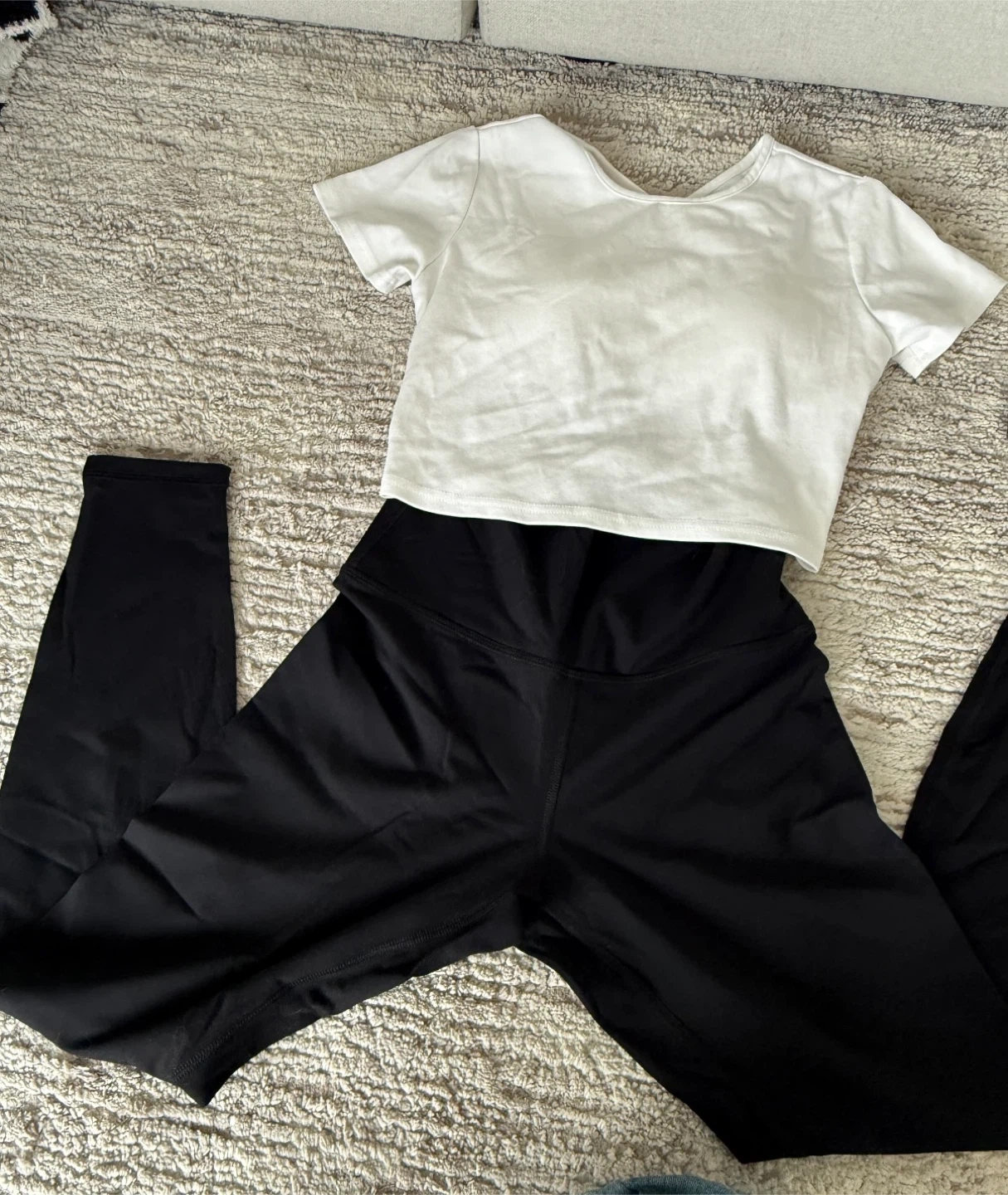 Selling a Nike Zenvy Ribbed Sports Tank in black, size xsmall. It's new with tags still attached! The leggings are size S, feel as same as Lululemon classic leggings. The top is white with a unique back design and padded!