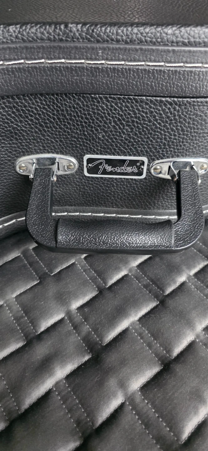 Fender hard case for acoustic guitars. It's black with a plush interior. Comes with latches and a handle. Perfect for transporting or storing your instrument!