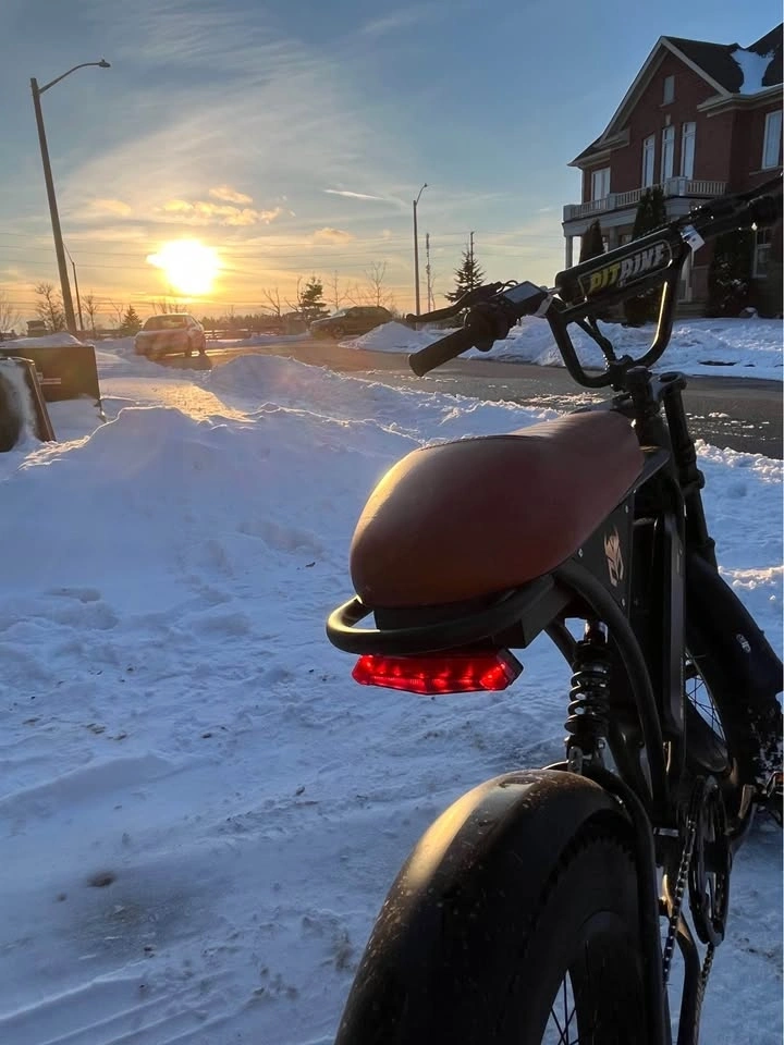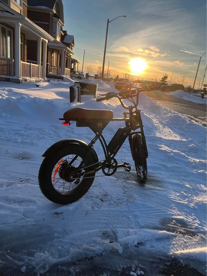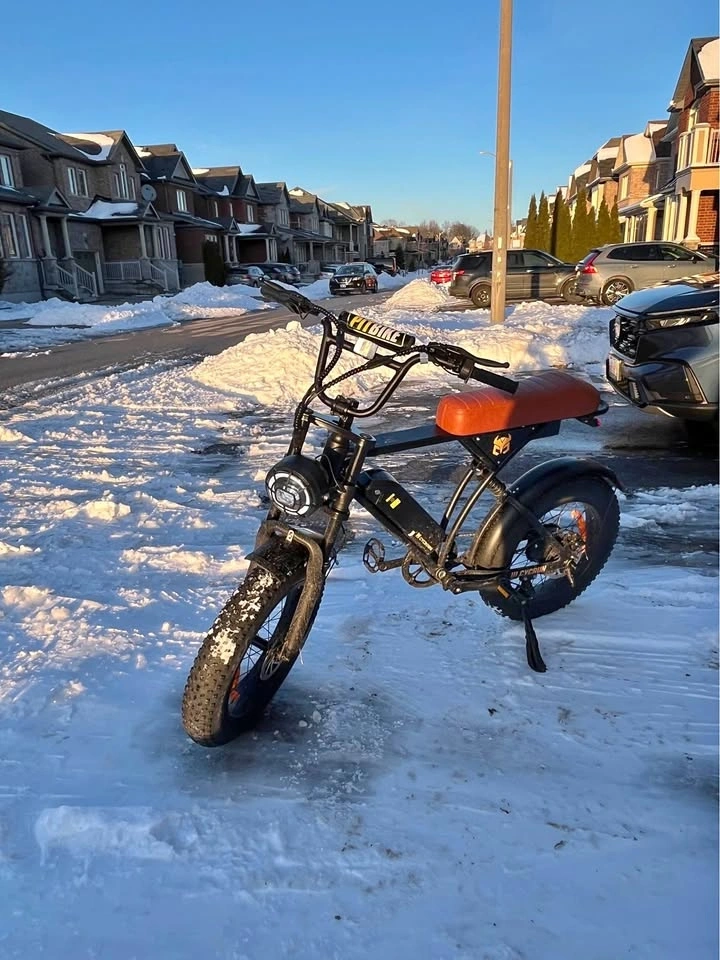 Brand new stylish e-bike with fat tires. Features a cool black frame and a comfy brown seat. Comes with a bright front headlight and a red rear taillight, as well as turn signals and a horn. Great for cruising around; the fat tires allow for off-road use on trails, mountains, and snow. It has cruise control and offers a range of 90km with speeds of 32/45 kmh. Considering trades for a Yozma in size 10 or a Valtinsu EM5 Electric Dirt bike.