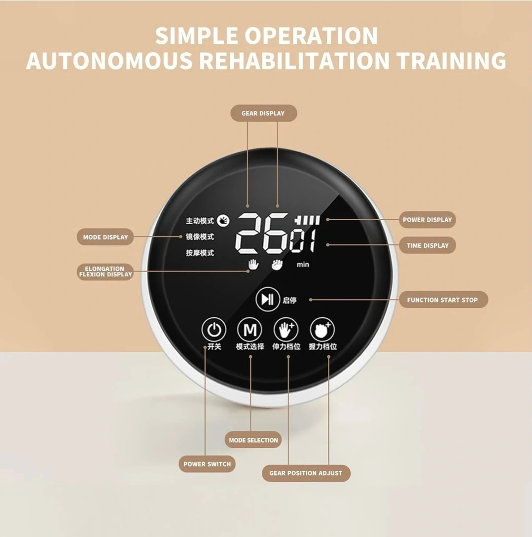 This rehabilitation robot glove system aids in autonomous hand rehabilitation training. It's designed for stimulating neurons to capture finger clenching and hand stretching movements. Useful for postoperative recovery, hand numbness, and stiffness relief.