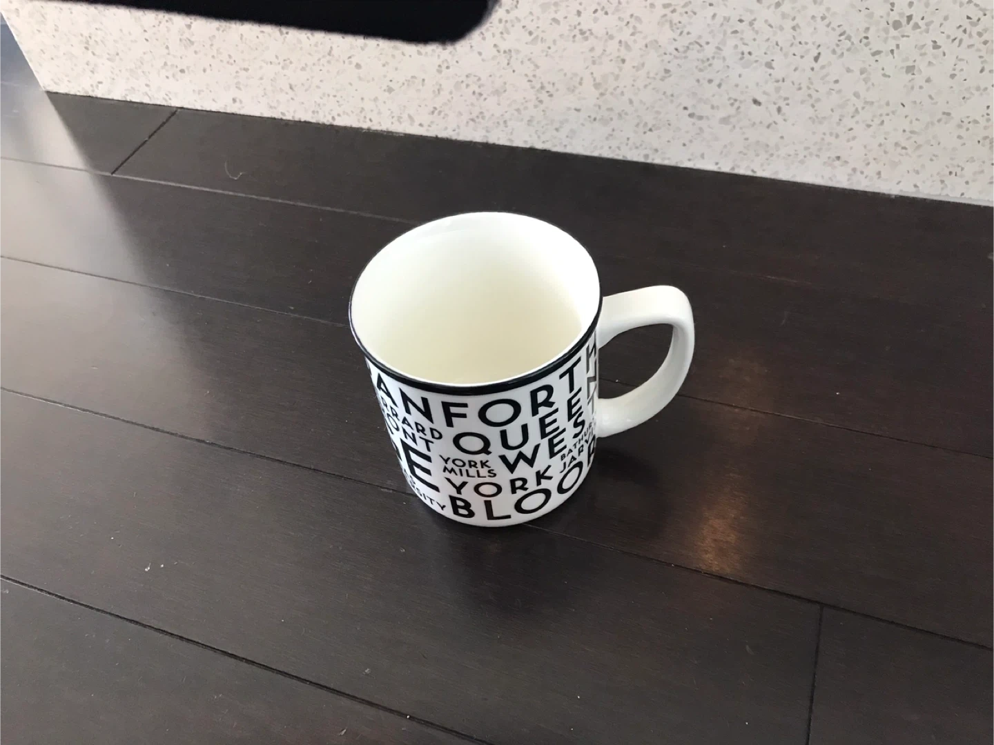 Here's a mug decorated with Toronto street names! It's in new condition and ready to use for your favourite hot beverage