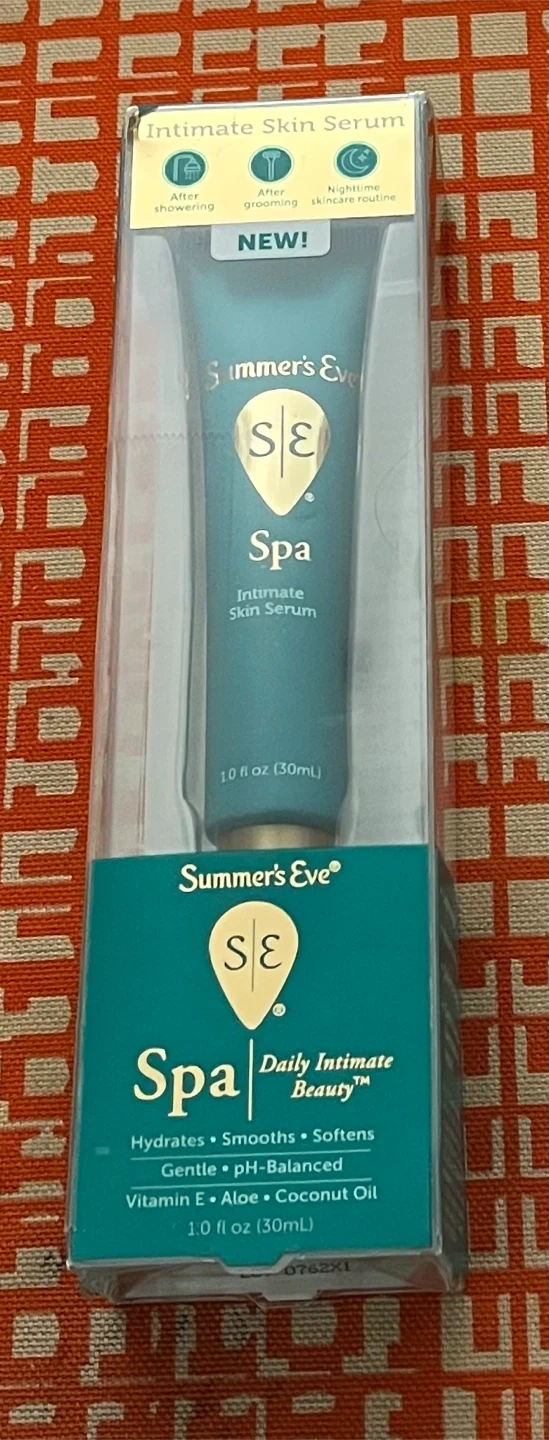 This Summer's Eve Spa Serum is designed to hydrate, smooth, and soften intimate skin. It's infused with Vitamin E, Aloe, and Coconut Oil, absorbing quickly and being gentle for daily use. Safe for sensitive skin and free from dyes, parabens, and fragrances. Gynecologist and Dermatologist tested!
