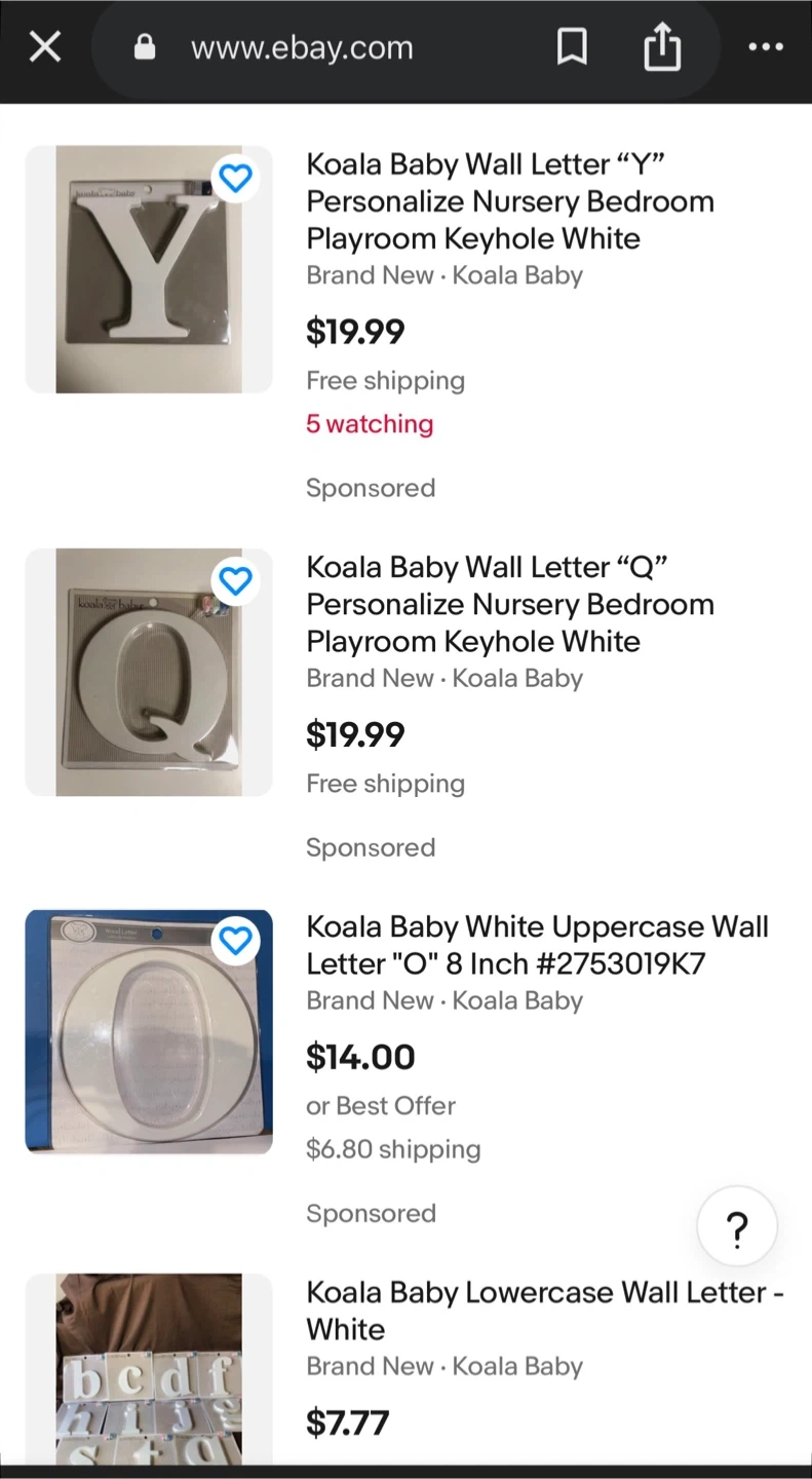 65Selling a brand new Koala Baby letter 'S' and 'A'! They're still in their original packaging and ready to add a personal touch to any room. Perfect for nurseries, kids' rooms, or as a decorative piece anywhere in your home! Price for each is $10 each and $15 for both.