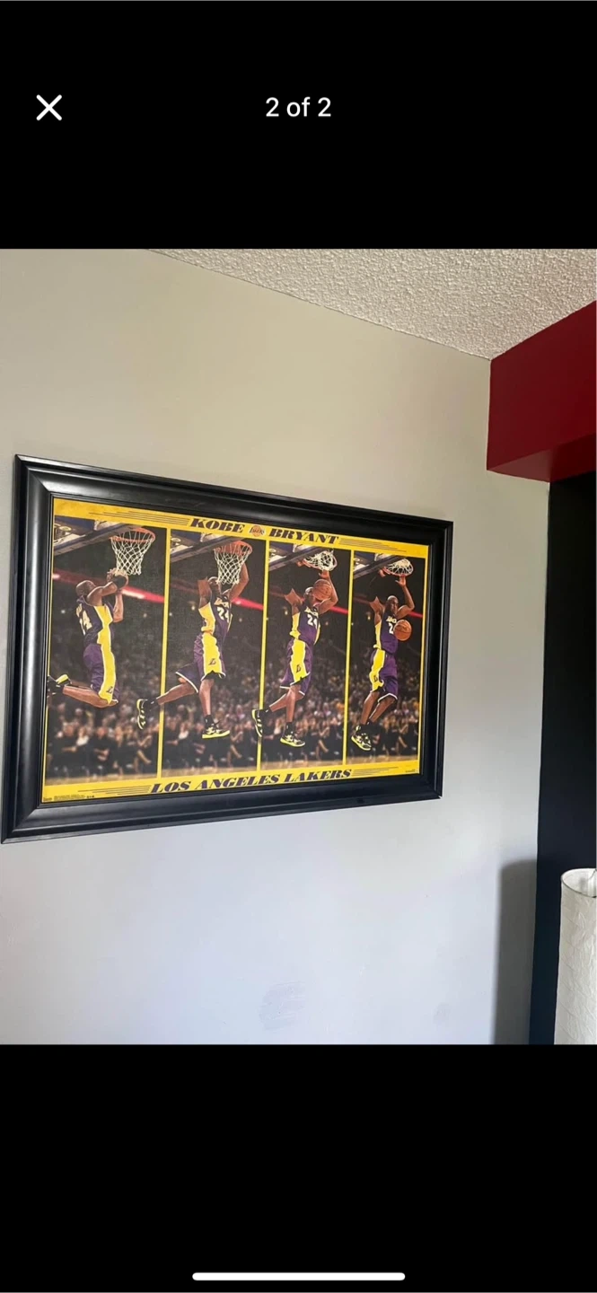 60Selling a framed poster of Kobe Bryant with the Los Angeles Lakers. It's a great piece for any basketball fan!