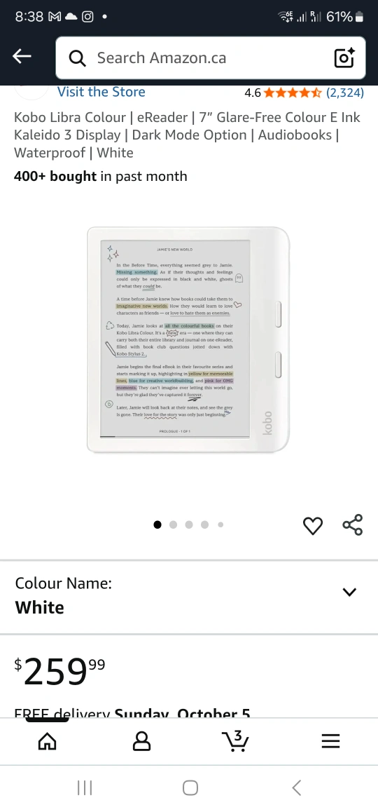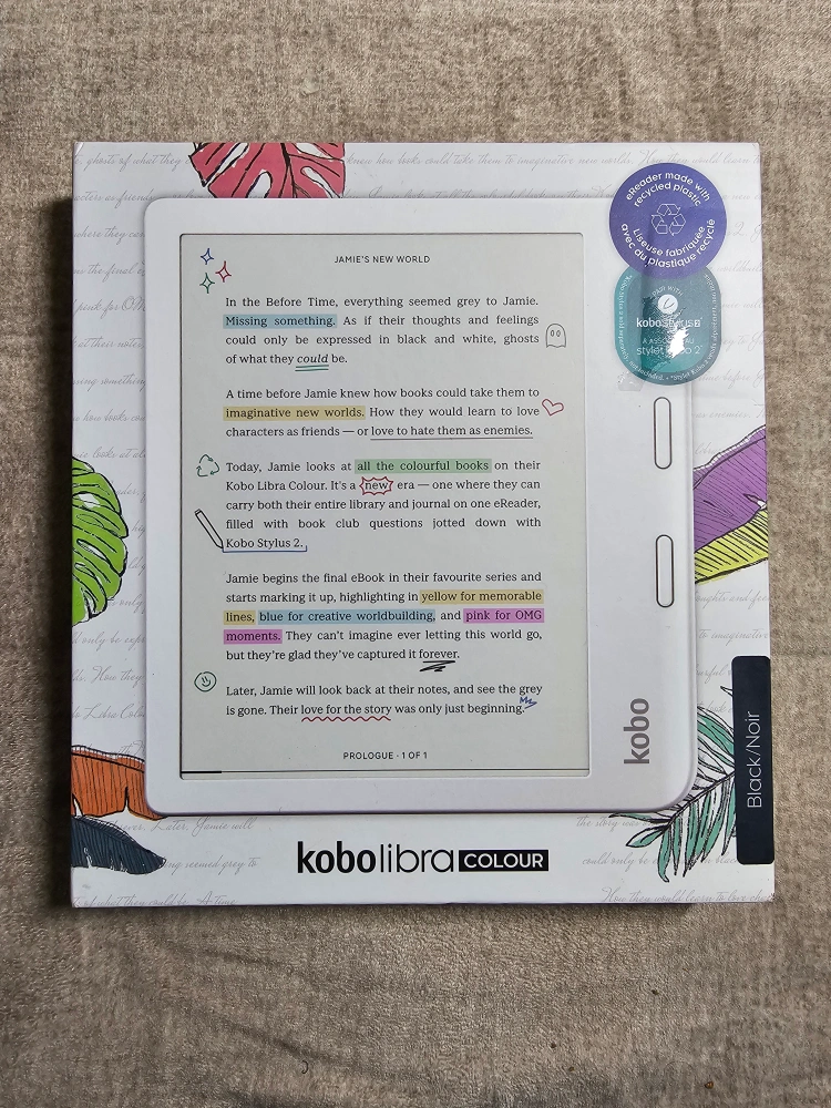 Selling Kobo Libra Colour eReader. This eReader features a 7" glare-free colour e ink Kaleido 3 display, dark mode option, and audiobook support. original price 260+Tax