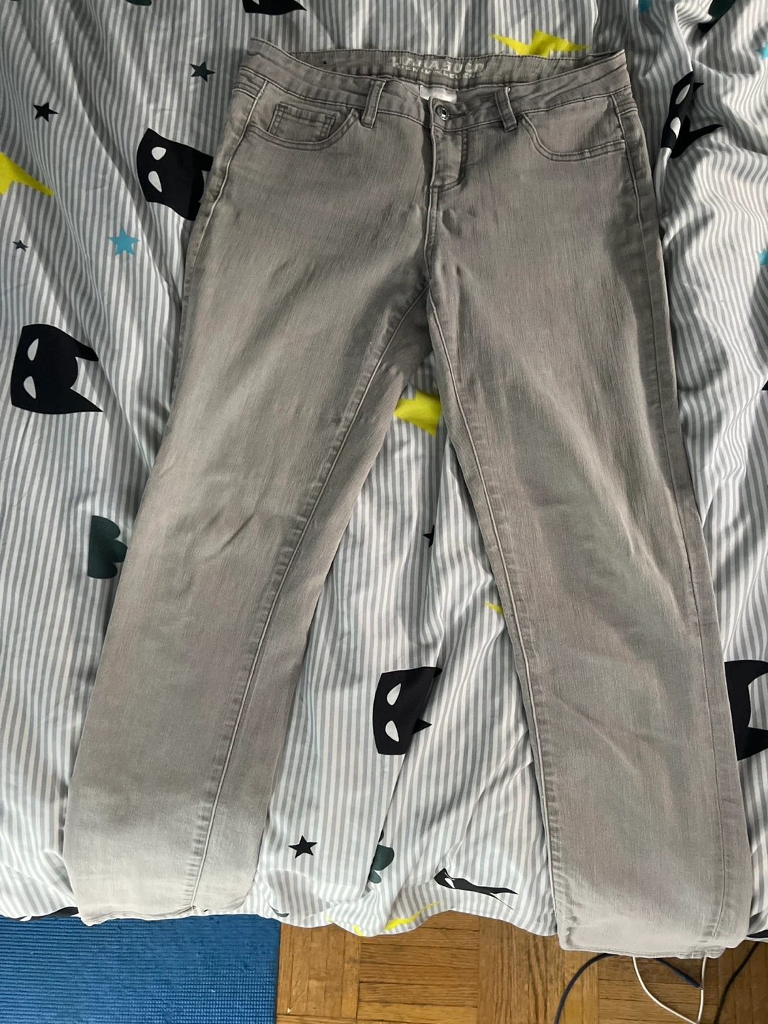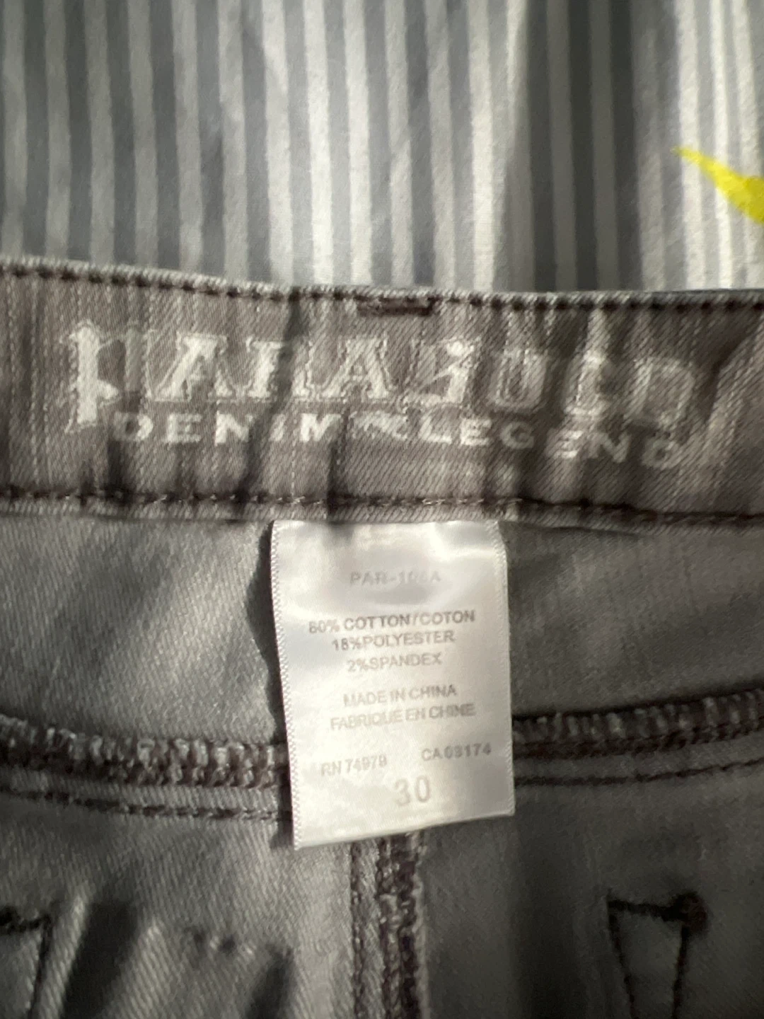Selling a pair of Paradise Gold denim jeans in size 30. They're a stylish grey colour and made of 80% cotton, 18% polyester, and 2% spandex. Perfect for everyday wear!