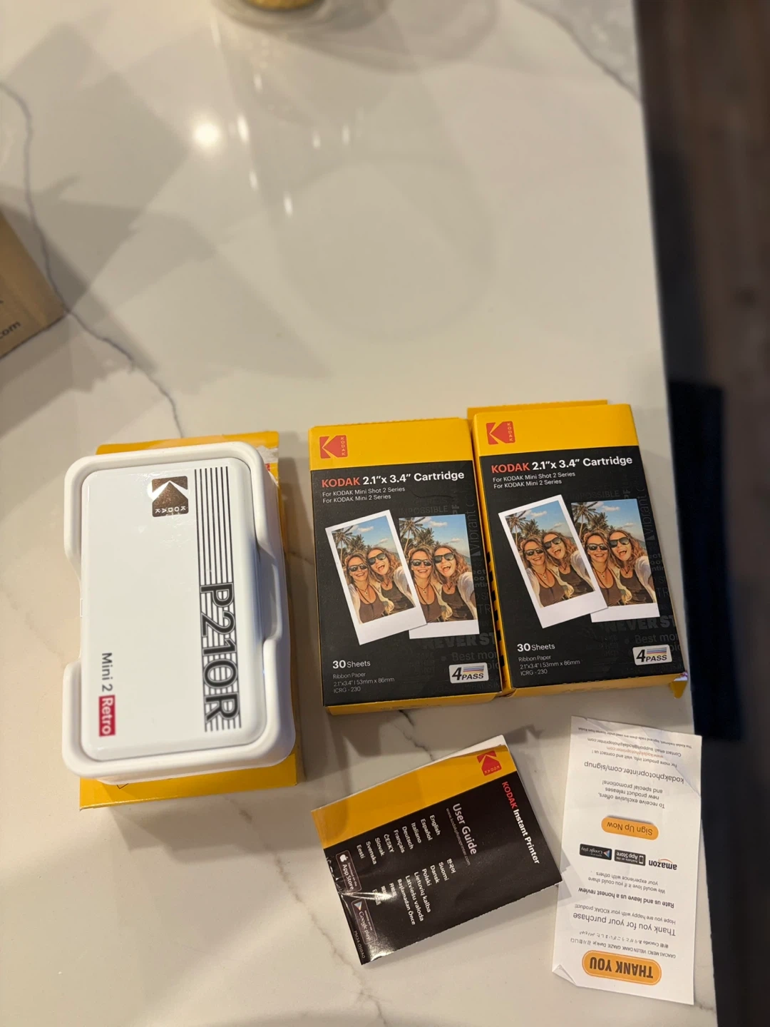 10Selling a Kodak Mini 2 Retro P210R instant photo printer! It comes with two packs of Kodak 2.1" x 3.4" cartridge paper (30 sheets each). Also includes the user guide
