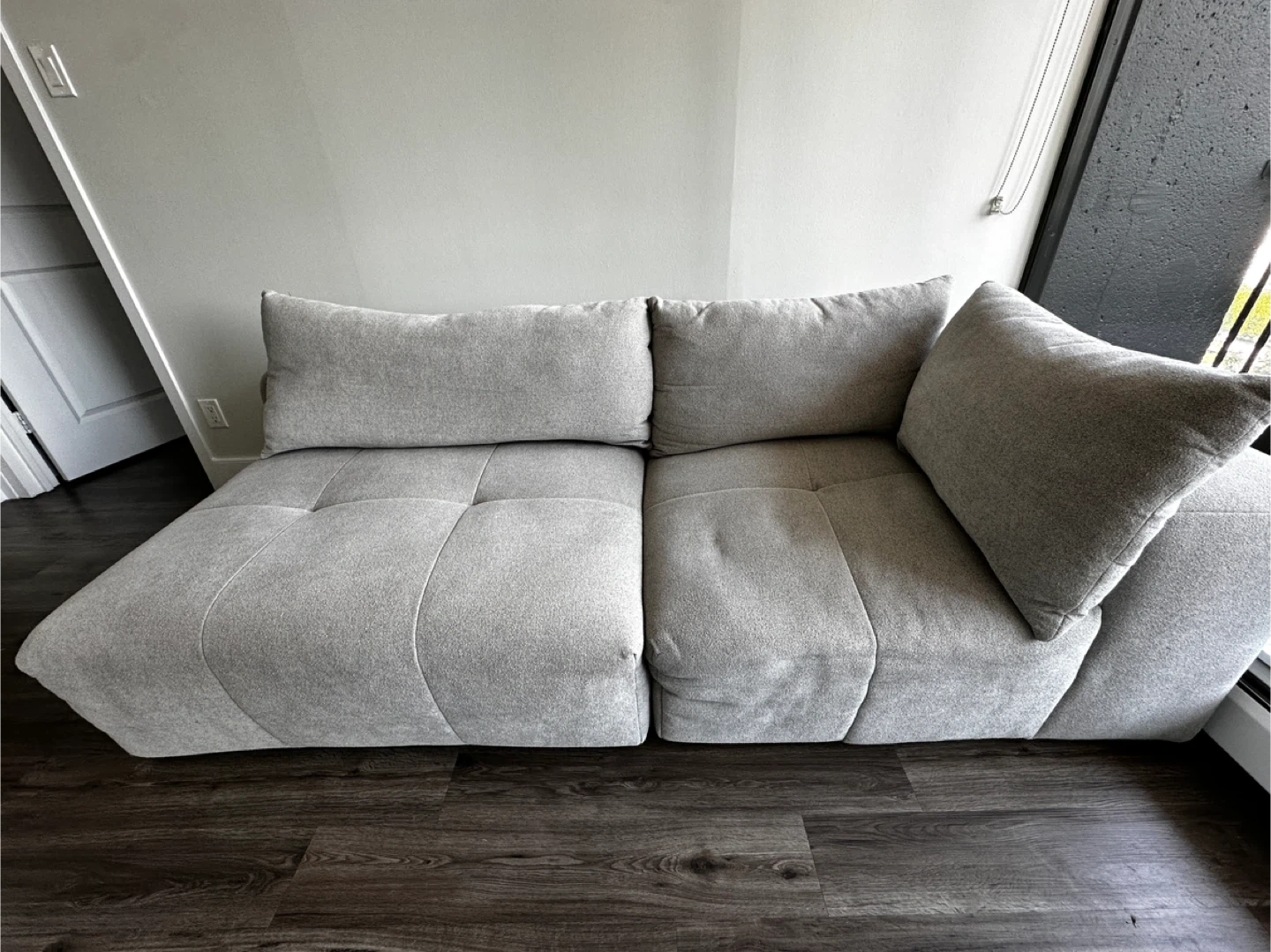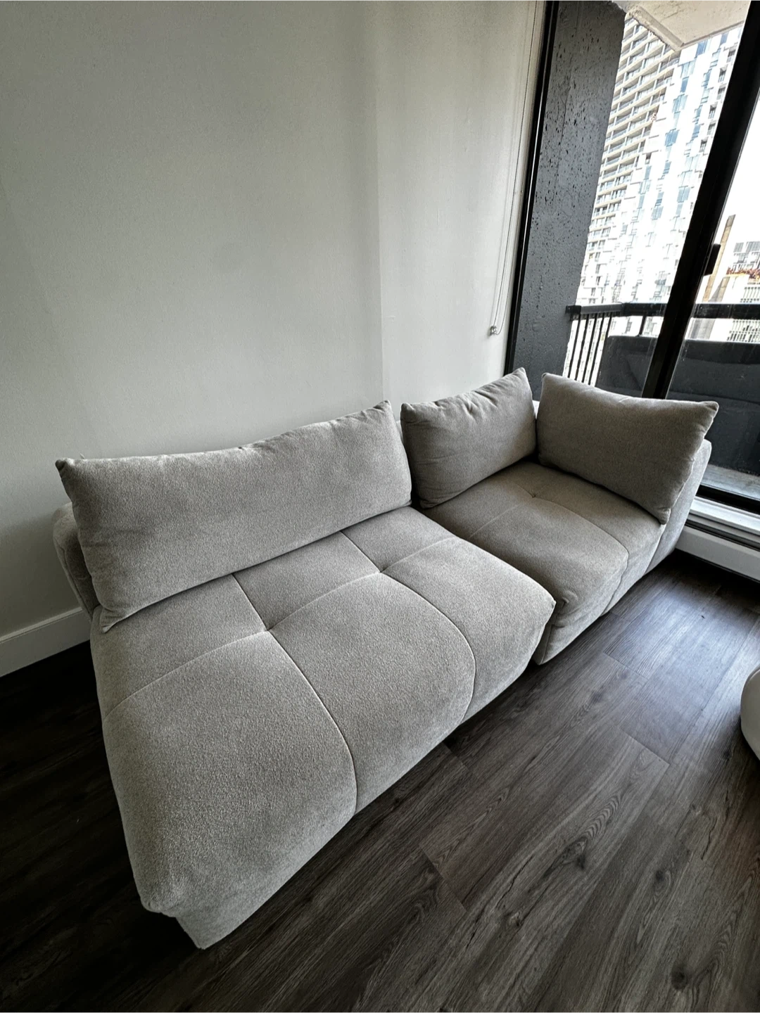 55Modular L Couch. Like new condition barely used as kept in basement. No smoking, no smell, no stains, no tears, no cuts. Originally bought for $2300 plus tax and delivery