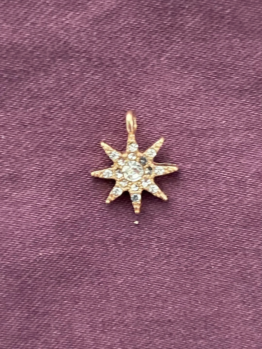 Delicate gold charm shaped like a star. Small clear crystals embellish the star. Perfect for jewellery making or adding to existing pieces.