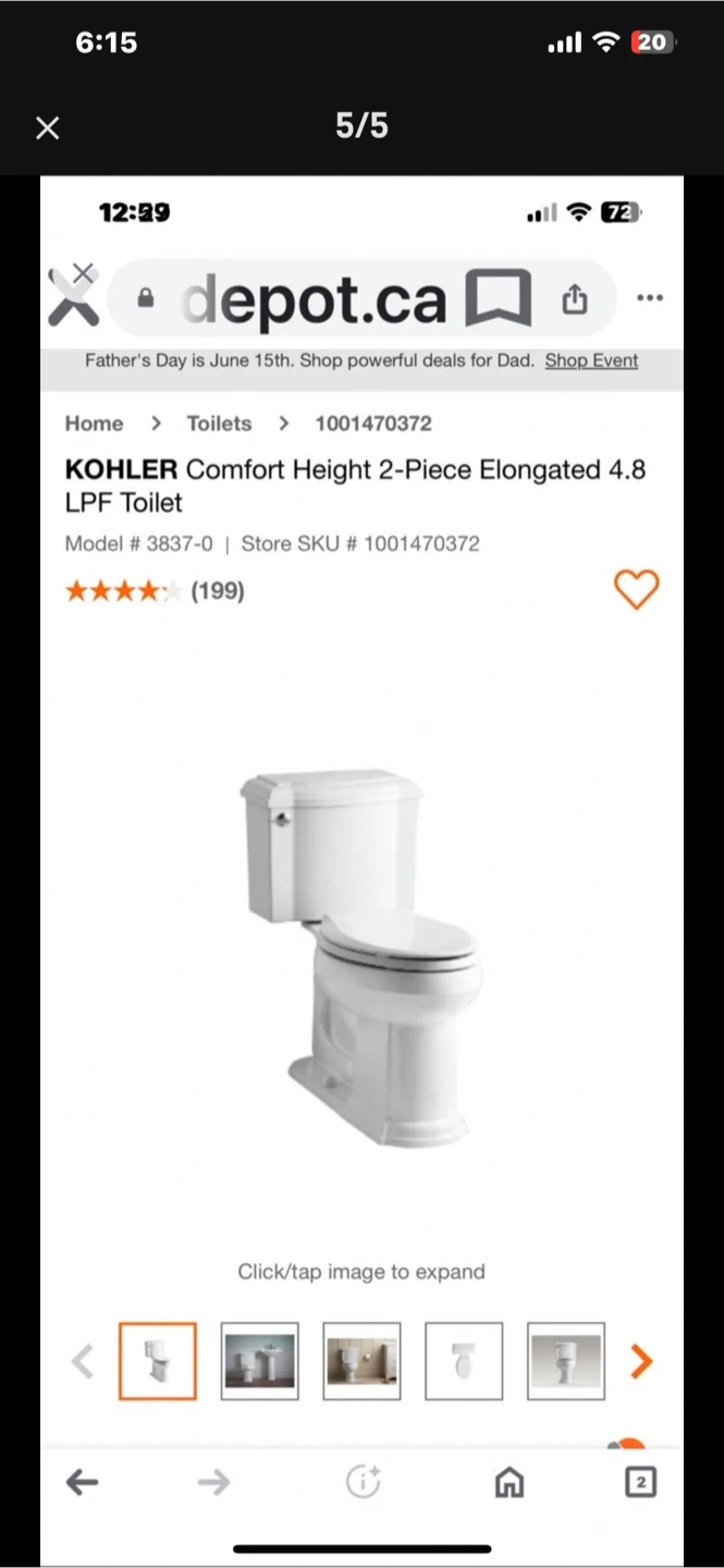 Selling a KOHLER Comfort Height 2-Piece Elongated 4.8 LPF Toilet. It's in great condition and ready for a new home!
