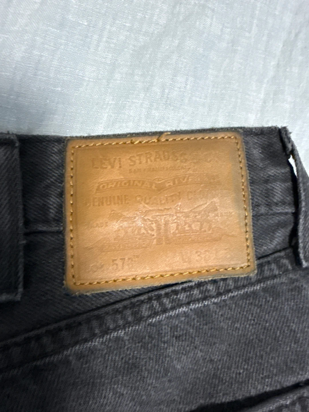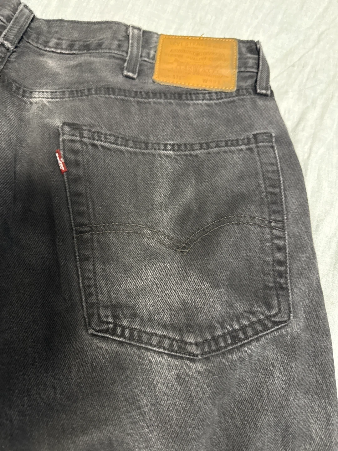 These Levi's 575 jeans come in a relaxed fit and black wash. Made with durable denim. A classic wardrobe staple! Has a minor hole on the right leg that has been patched.